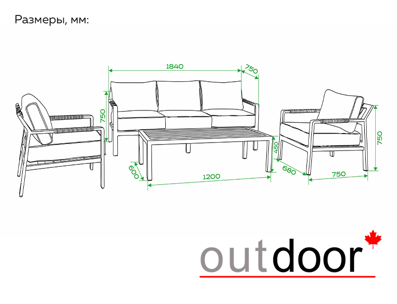 Диван: 1840x750x750 мм - 1 шт.
