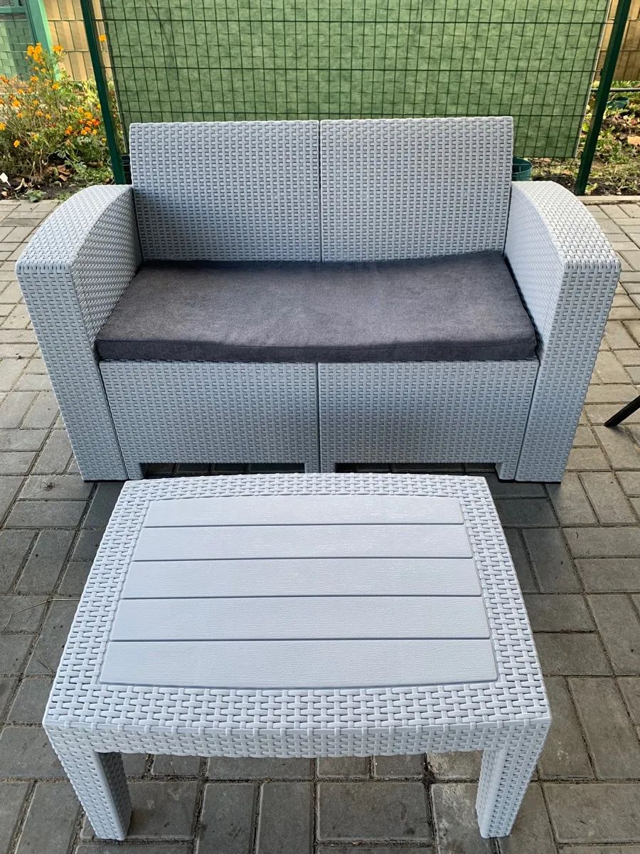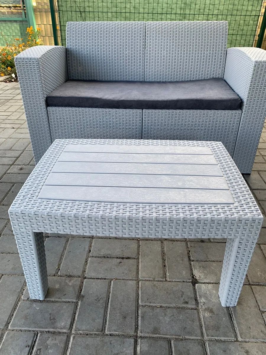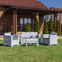 Комплект выполнен из прочного полипропилена, устойчивого к влаге, солнцу и перепадам температур. Ему не страшны ни дожди, ни палящее солнце, ни заморозки — круглый год он остаётся таким же красивым и удобным, как в первый день.