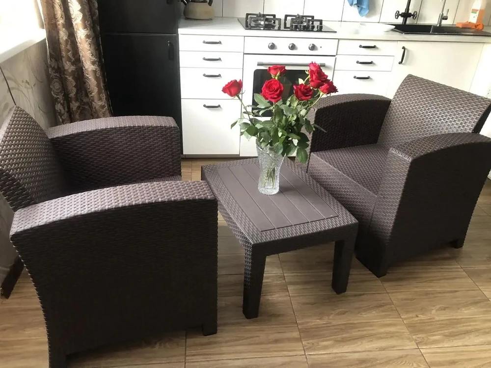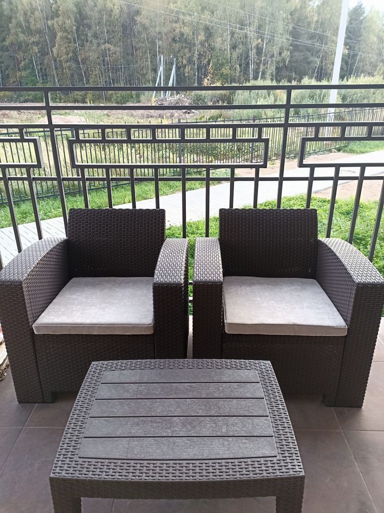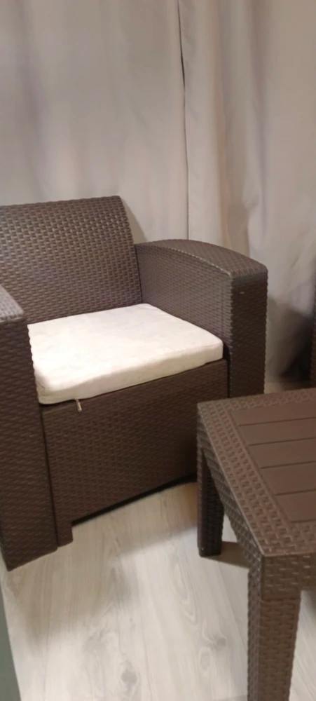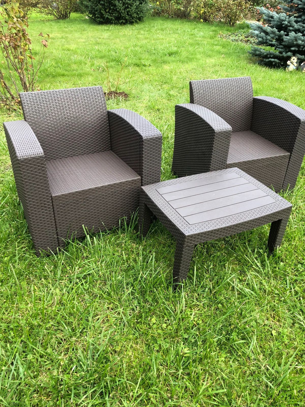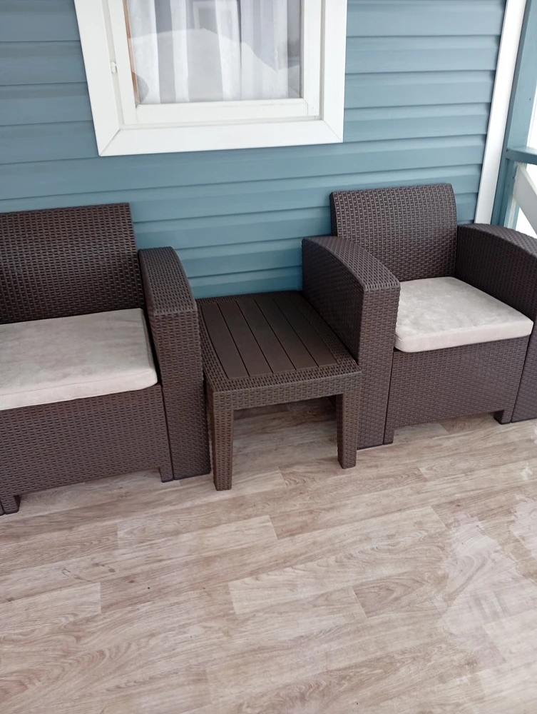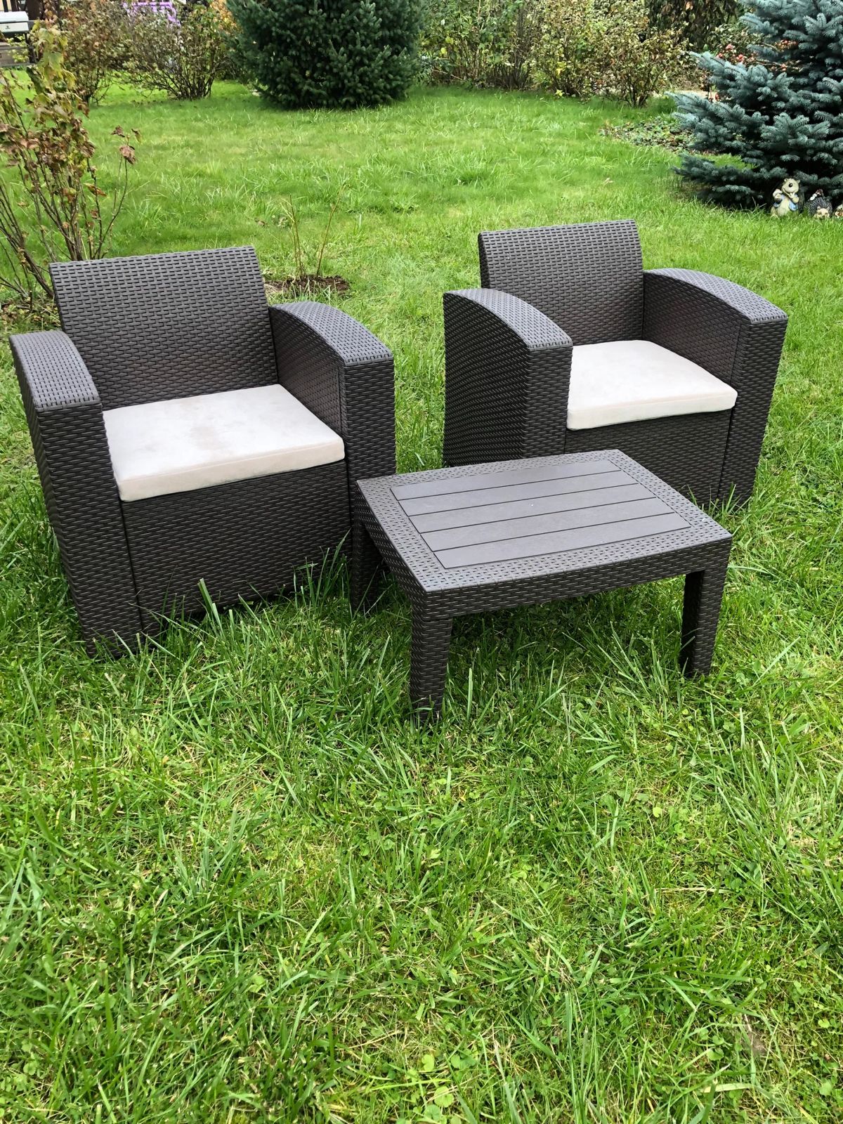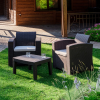 Комплект выполнен из прочного пластика, устойчивого к влаге, солнцу и перепадам температур. Он не требует особого ухода и отлично подходит для уличного использования в течение всего сезона.
