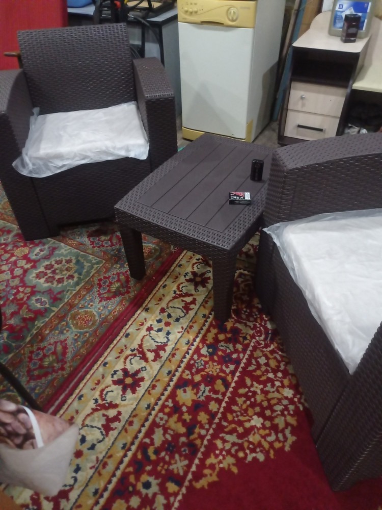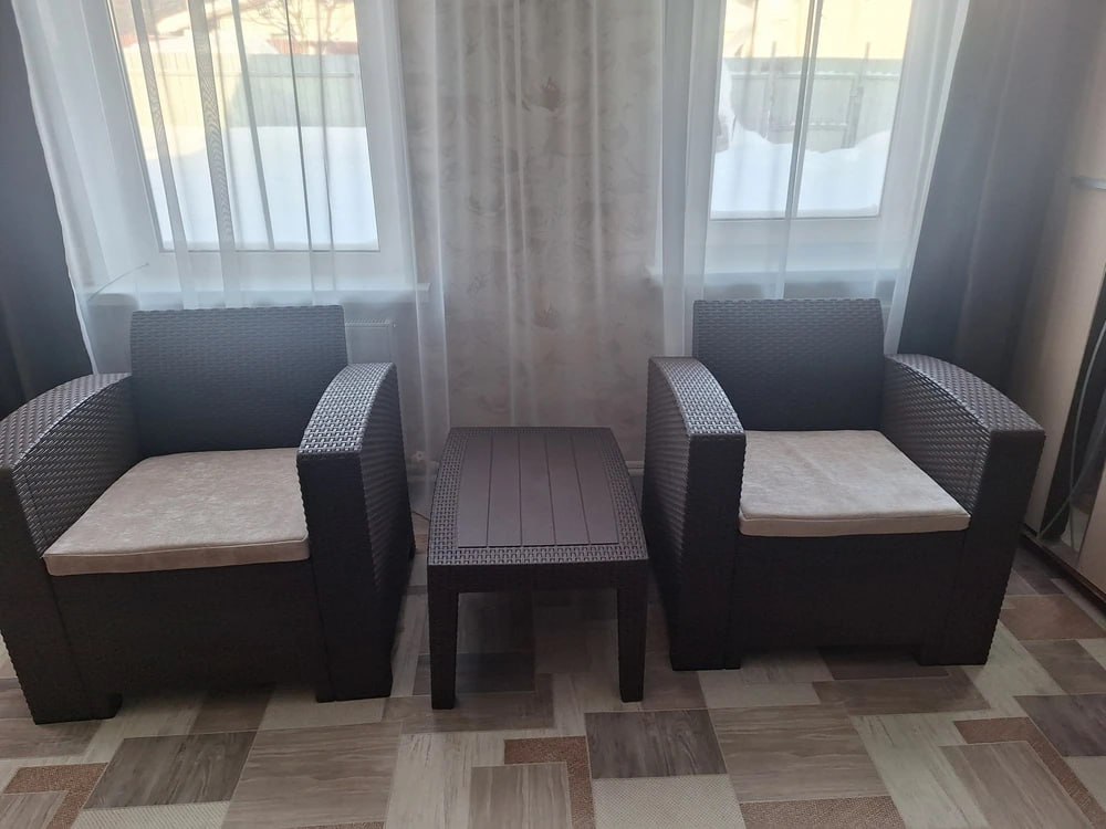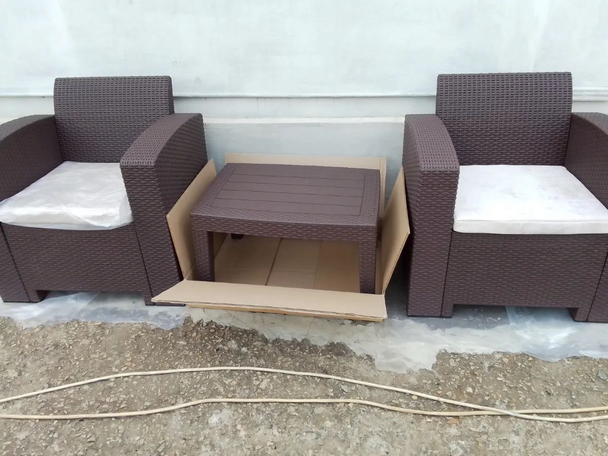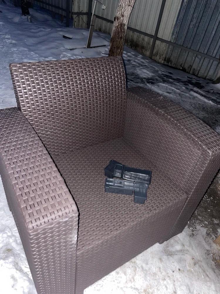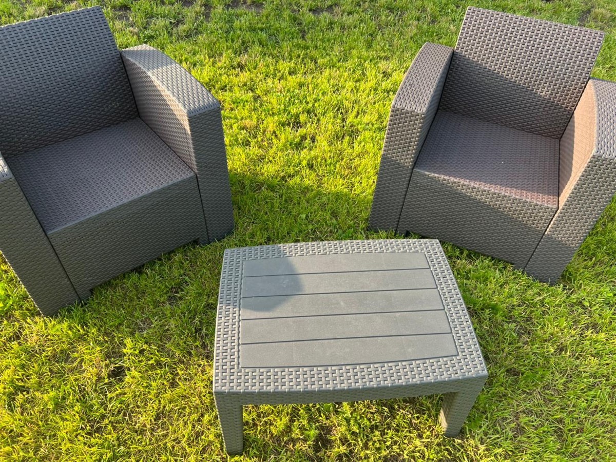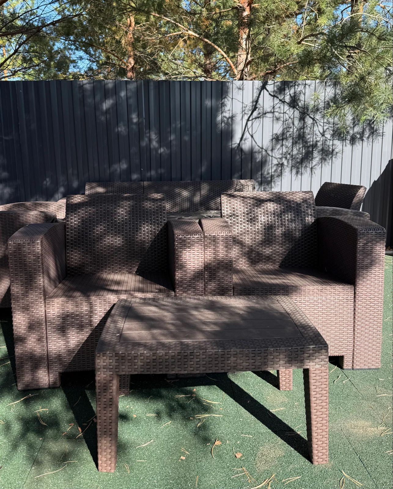 Комплект выполнен из прочного пластика, устойчивого к влаге, солнцу и перепадам температур. Он не требует особого ухода и отлично подходит для уличного использования в течение всего сезона.