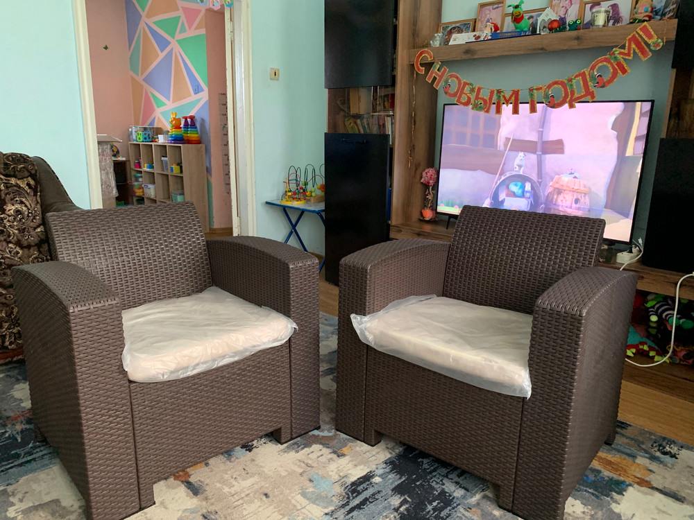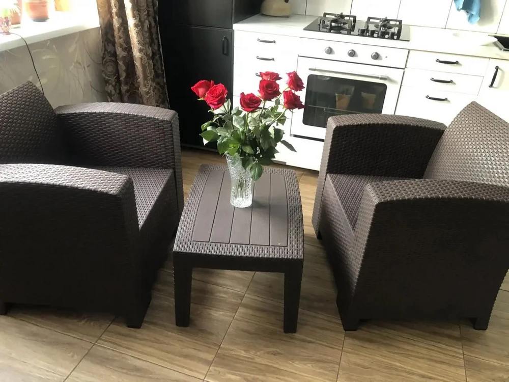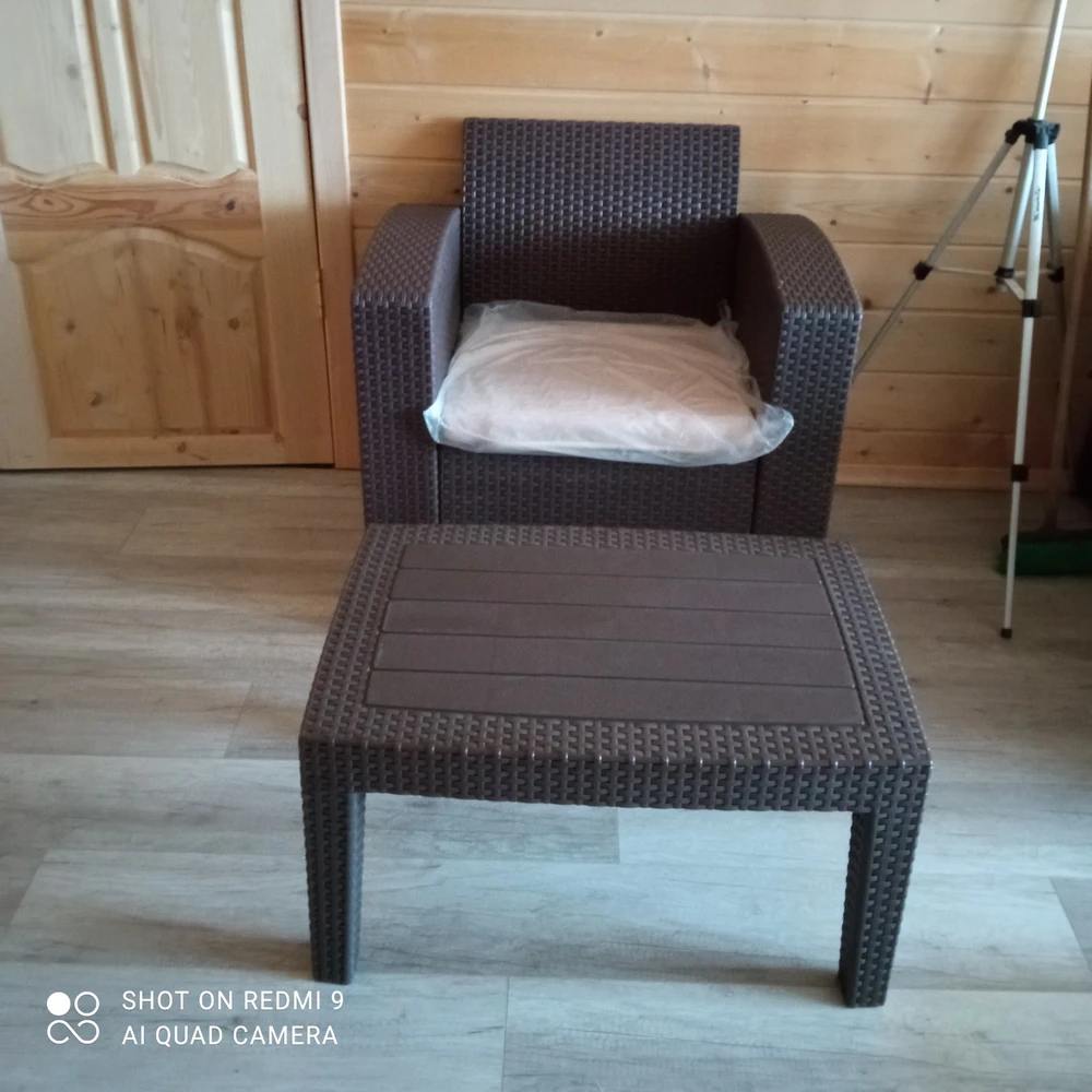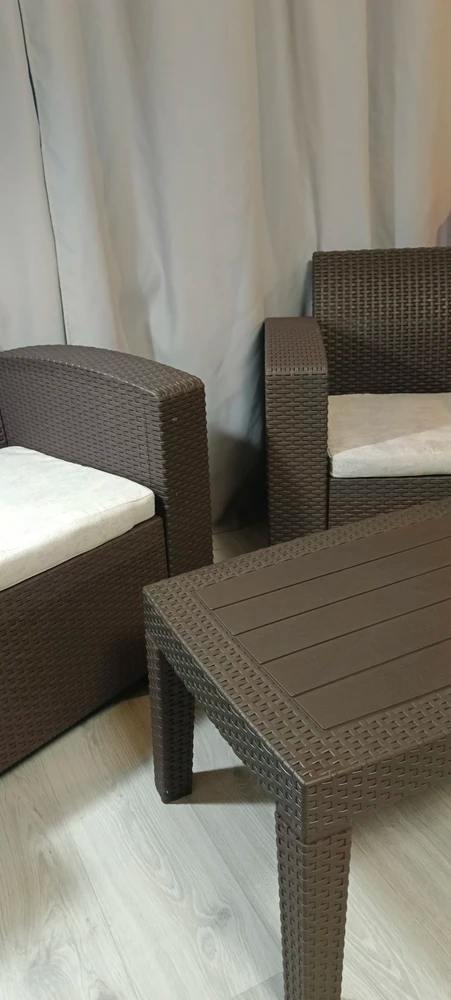 Тёплый коричневый цвет придаёт обстановке ощущение уюта и гармонии, а плетёная фактура добавляет естественной текстурности. Мягкие подушки обеспечивают комфортную посадку, а лёгкая конструкция позволяет легко переставлять мебель при необходимости.
