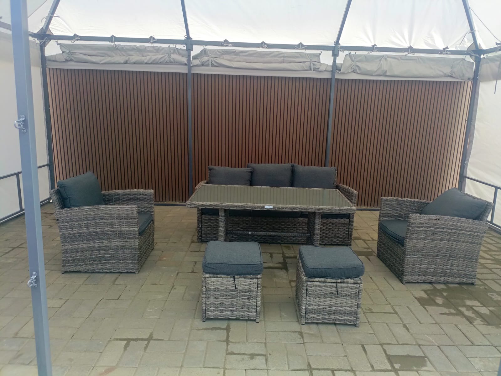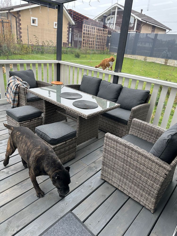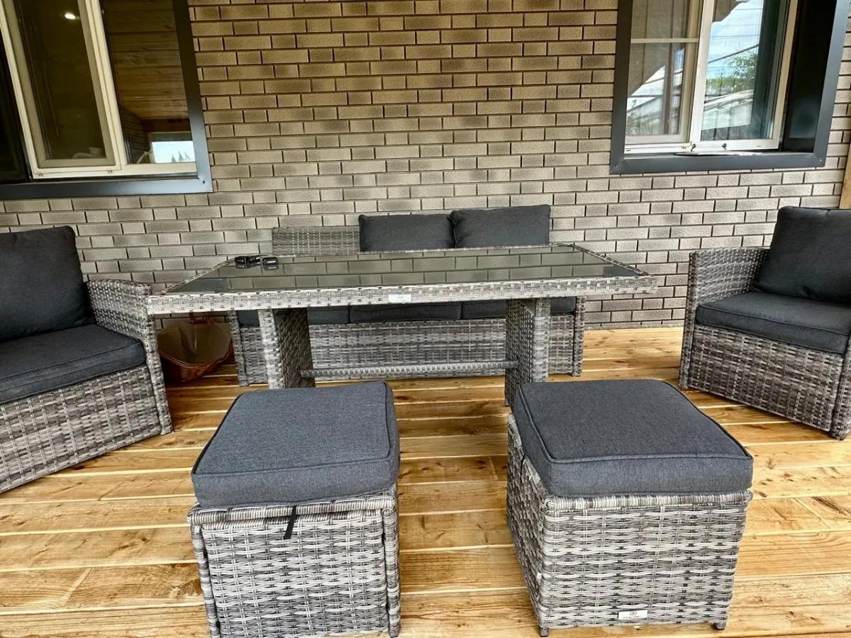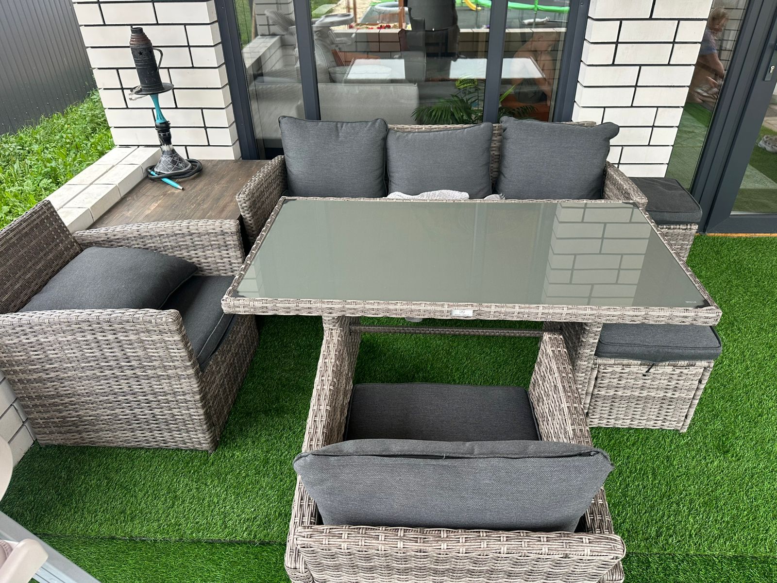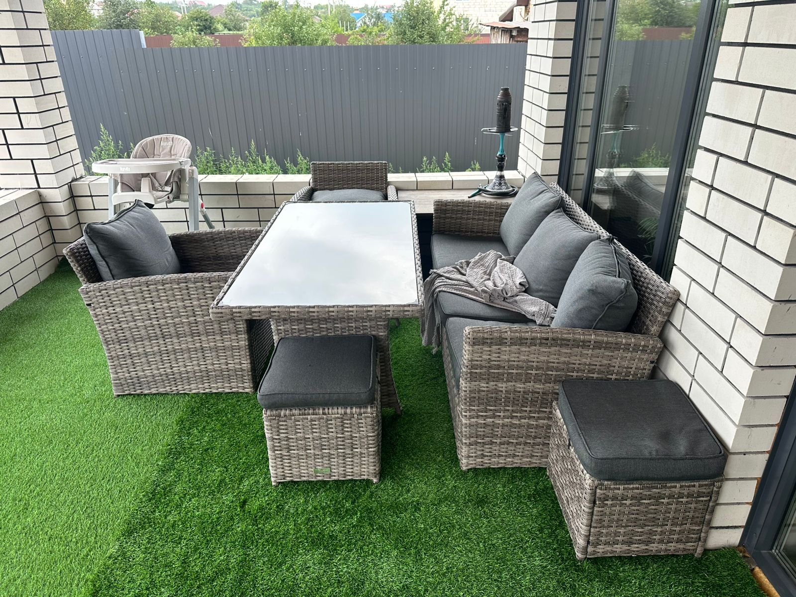 Выполненная в трендовом сером оттенке уличная мебель ZOYA обладает всеми необходимыми характеристиками для создания полноценного места отдыха на территории приусадебного участка. Комплект сочетает в себе качества обеденных гарнитуров и лаунж-зон, что делает его отменным решением для всех ценители досуга под открытым небом.