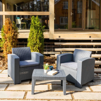 Комплект Royal Family Lana Lux XS в графитовом цвете — это уютная зона отдыха для двоих, которая легко помещается даже на самом компактном балконе. Идеальный выбор, если вы хотите создать атмосферу кафе у себя дома — с комфортными креслами, мягкими подушками и стильным журнальным столиком.