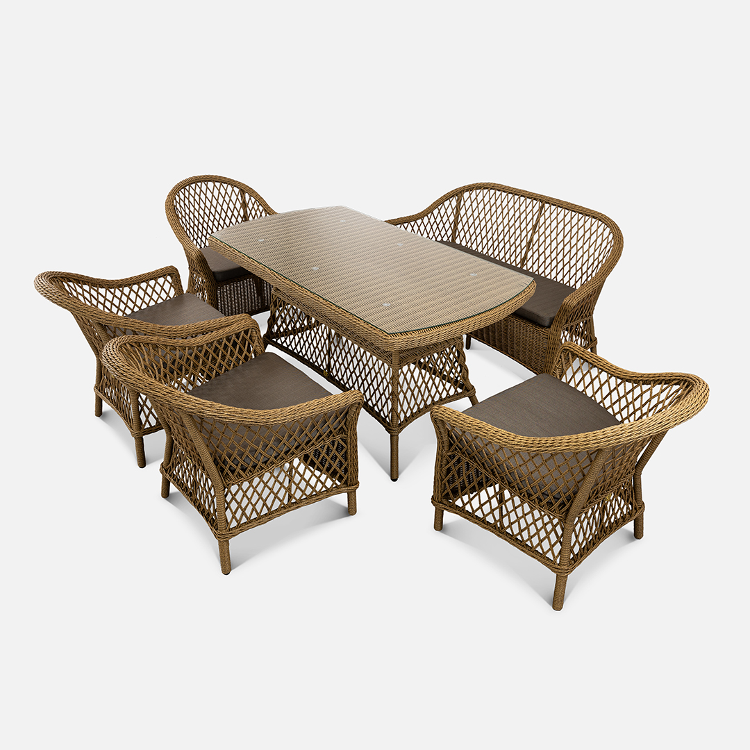 Материал комплекта - искусственный ротанг (ручного плетения)