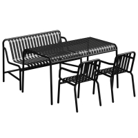 Комплект обеденной мебели Flow3: стол обеденный большой + диван высокий без подлокотников + 2 стула с подлокотниками  черный RAL 9005