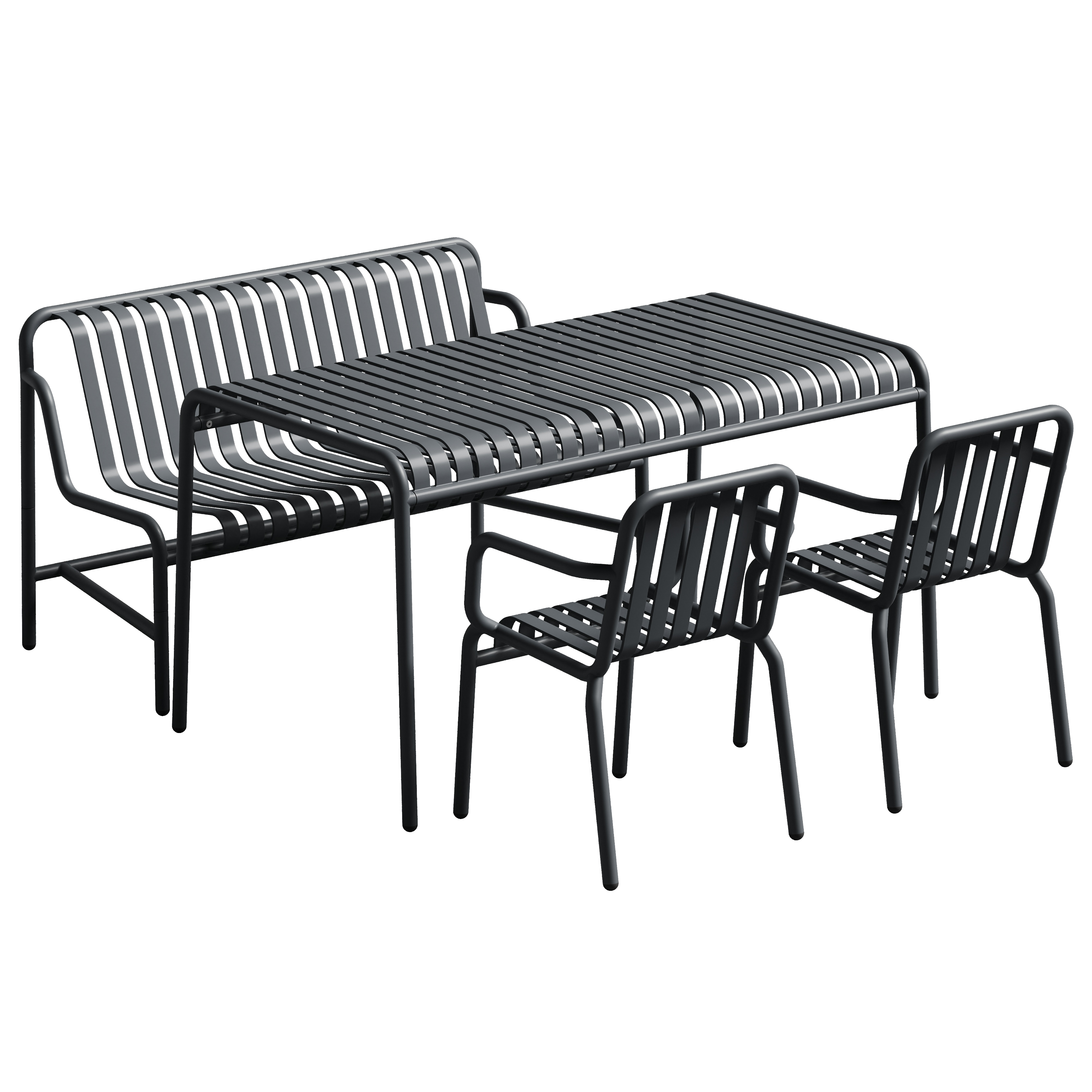 Комплект обеденной мебели Flow3: стол обеденный большой + диван высокий без подлокотников + 2 стула с подлокотниками  темно-серый RAL 7024