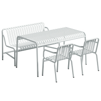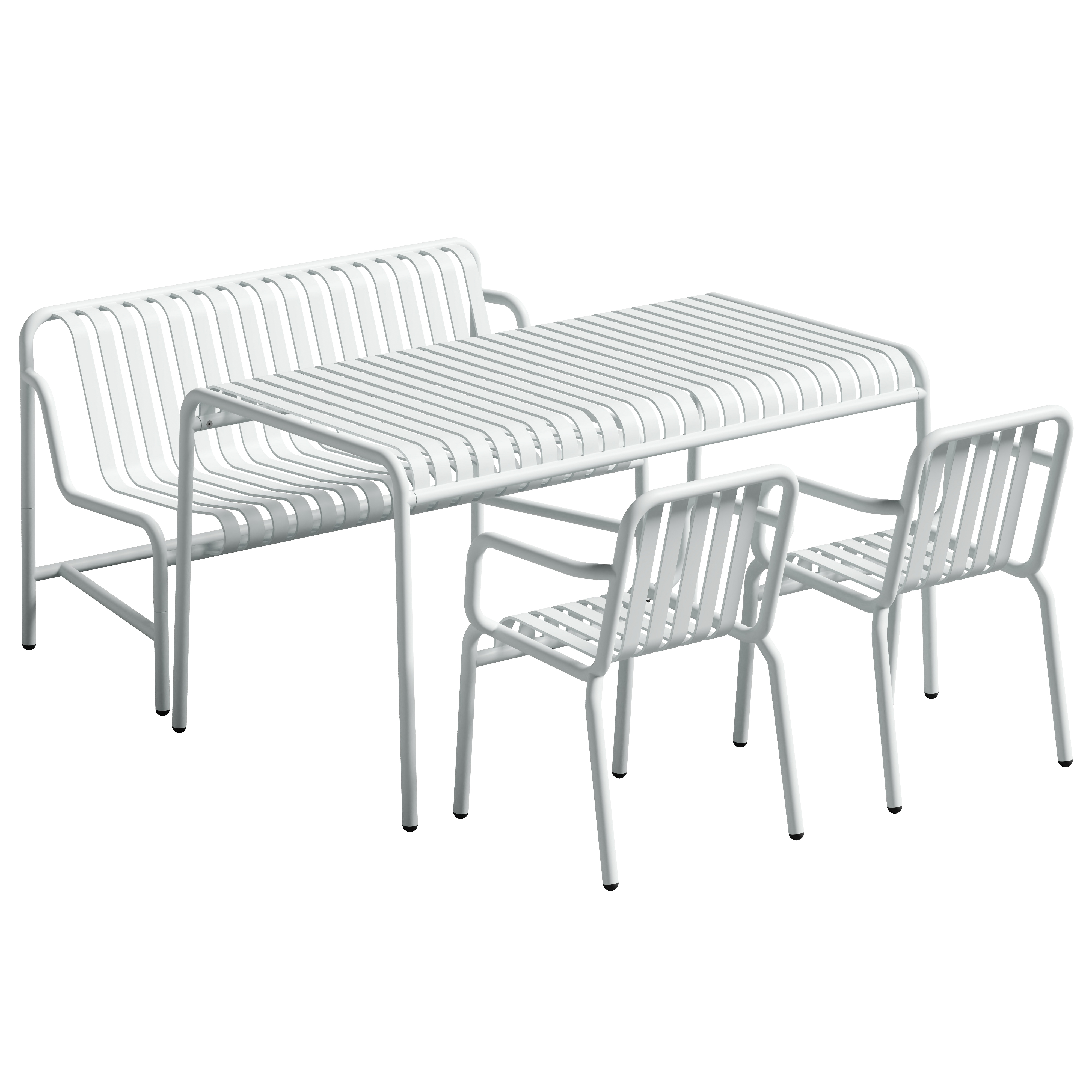 Комплект обеденной мебели Flow3: стол обеденный большой + диван высокий без подлокотников + 2 стула с подлокотниками белый RAL 9003
