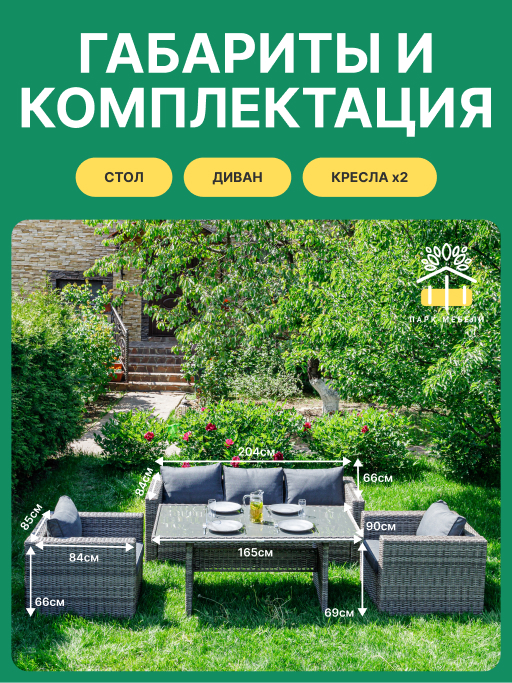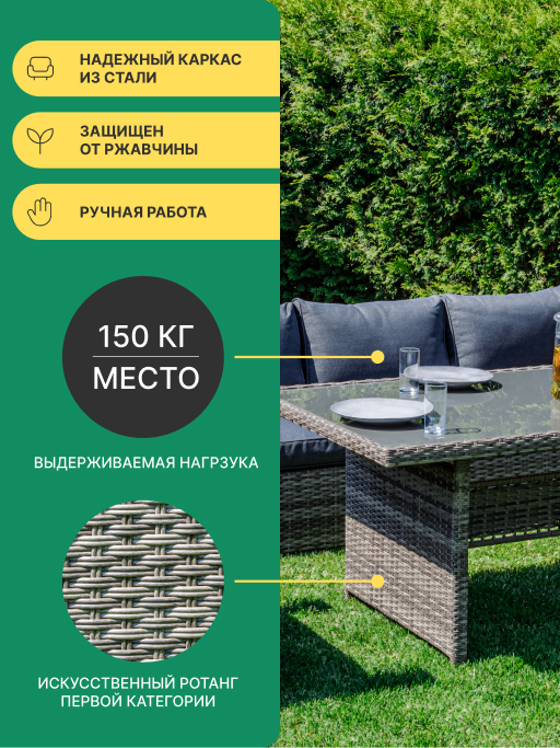- Материал комплекта - искусственный ротанг (ручного плетения)