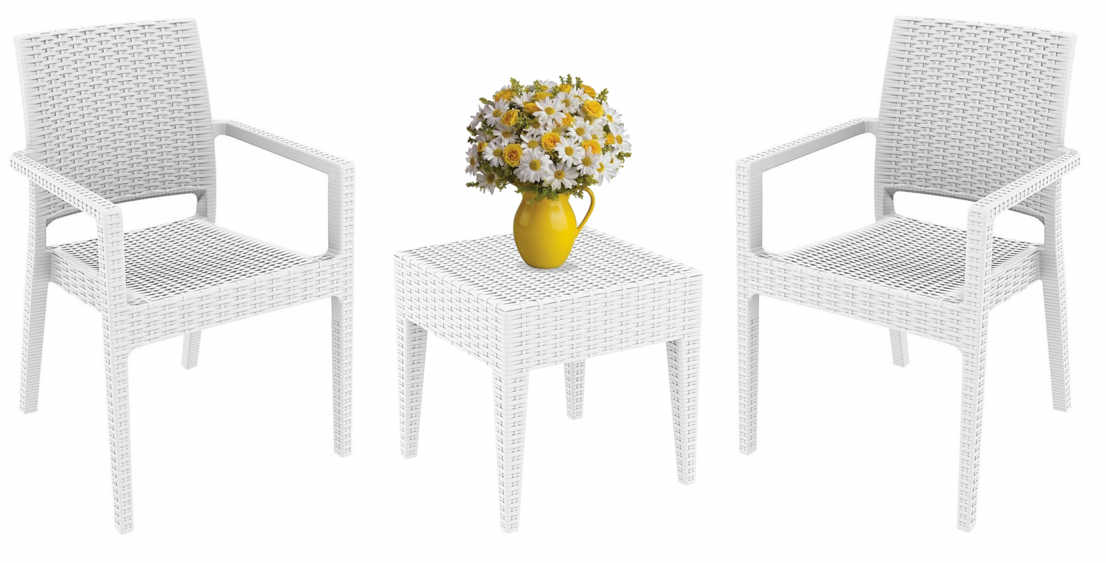 Комплект пластиковой мебели Miami Ibiza состоит из 2-х кресел Ibiza и столика Miami (GT1009), которые станут отличным выбором для небольших пространств: балконов, террас, зон возле бассейна. Благодаря использованию высококачественных материалов мебель долгое время не теряет своего привлекательного внешнего вида, даже несмотря на активную эксплуатацию. Благодаря устойчивости к ультрафиолетовому воздействию, кресла и стол из пластика можно использовать в том числе и на открытых площадках.