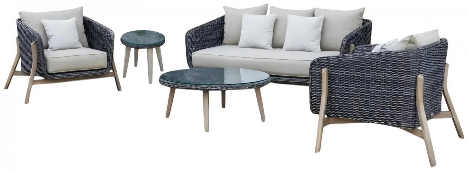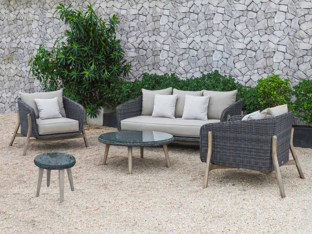 Jura представляет собой комплект лаунж мебели из искусственного ротанга, состоящий из 3-местного дивана, двух кресел, кофейного и бокового столиков, которые обеспечивают удобство и комфорт во время сидения. Благодаря своей универсальности и красоте мебель коллекции Jura успешно справляется с задачей, когда дело доходит до украшения дома, сада, террас или общественных пространств.