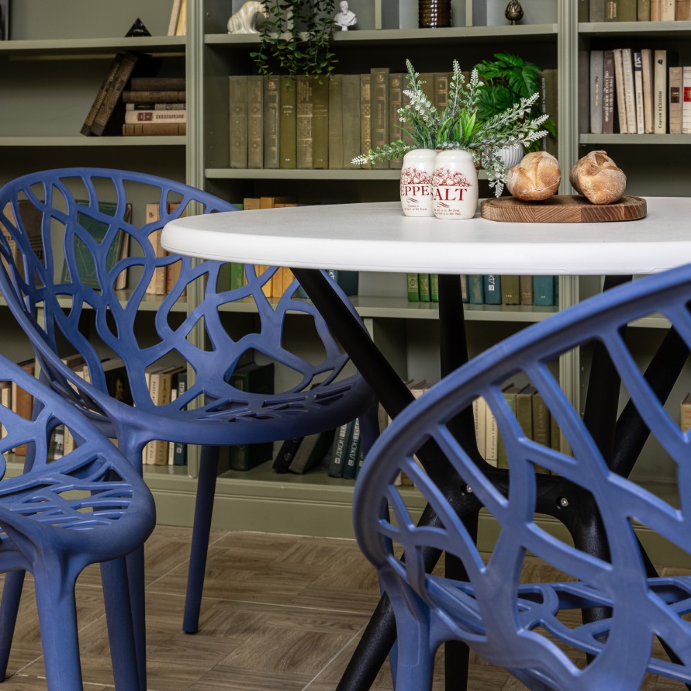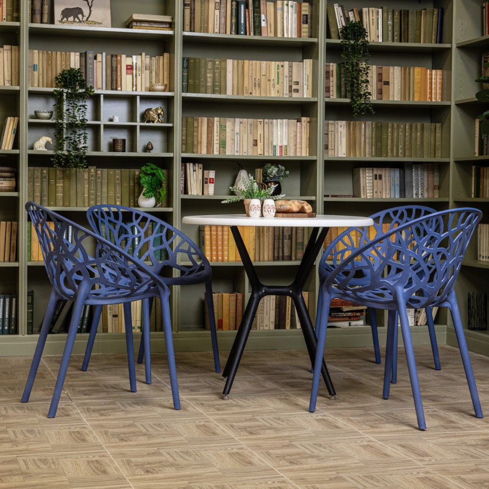 Комплект стол Tom чёрно-белый + 4 стула Aria лаванда — это практичное и стильное решение как для дачного участка, так и для коммерческого использования. Он идеально подойдёт для фудкортов, летних веранд кафе и открытых площадок, где важны надёжность, лёгкий уход и привлекательный внешний вид.