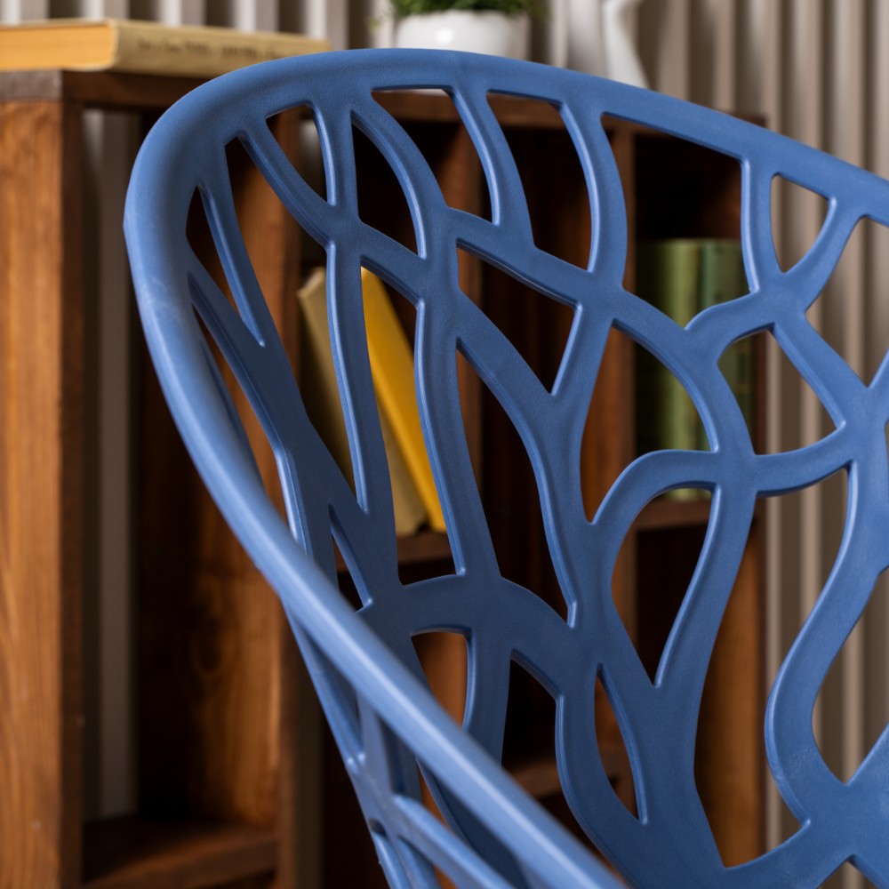Яркий лавандовый цвет стульев добавляет свежести и визуального акцента, а чёрно-белый стол создаёт контрастную базу, уместную в любой обстановке — от частного дворика до городского летника.
