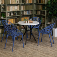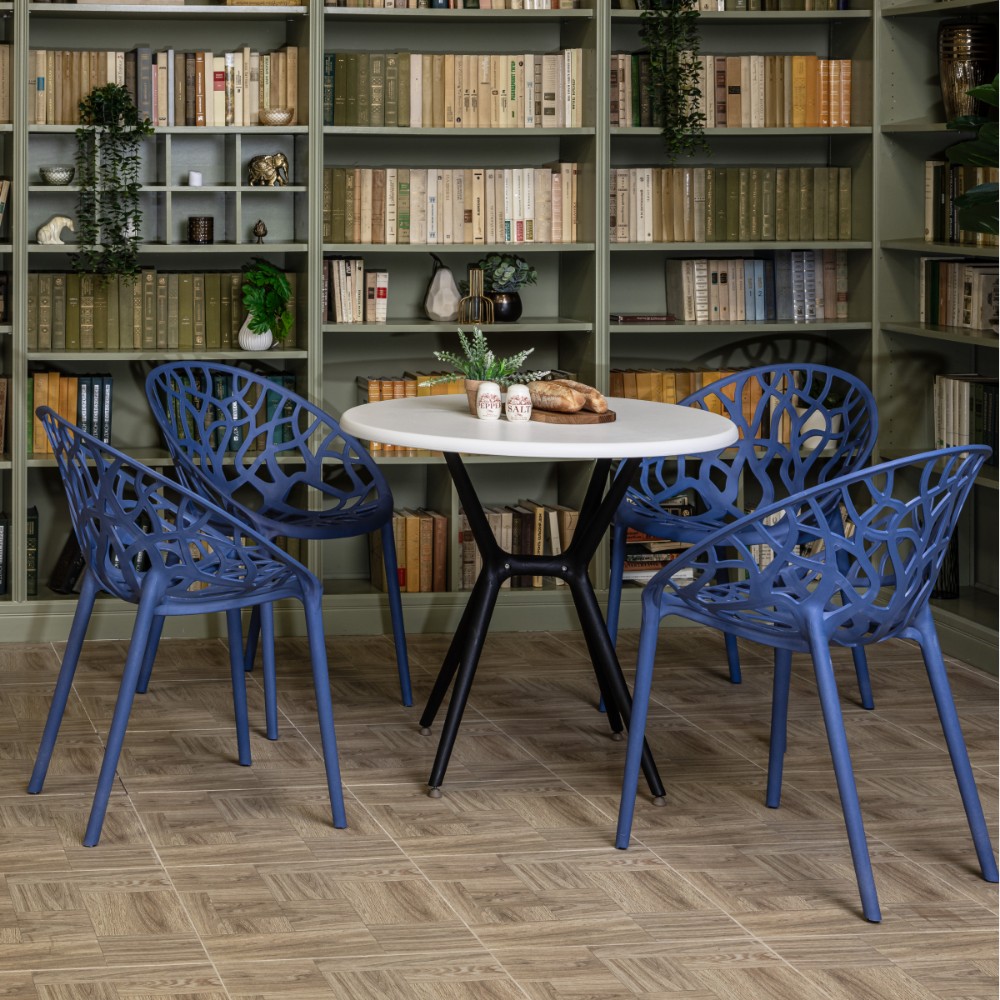 Стол выполнен из прочного пластика, устойчивого к влаге, солнцу и перепадам температур. Он не выцветает, не боится интенсивной эксплуатации и легко очищается. Стулья Aria — лёгкие, прочные, штабелируемые, отлично подходят для активного ежедневного использования и экономии пространства при хранении.