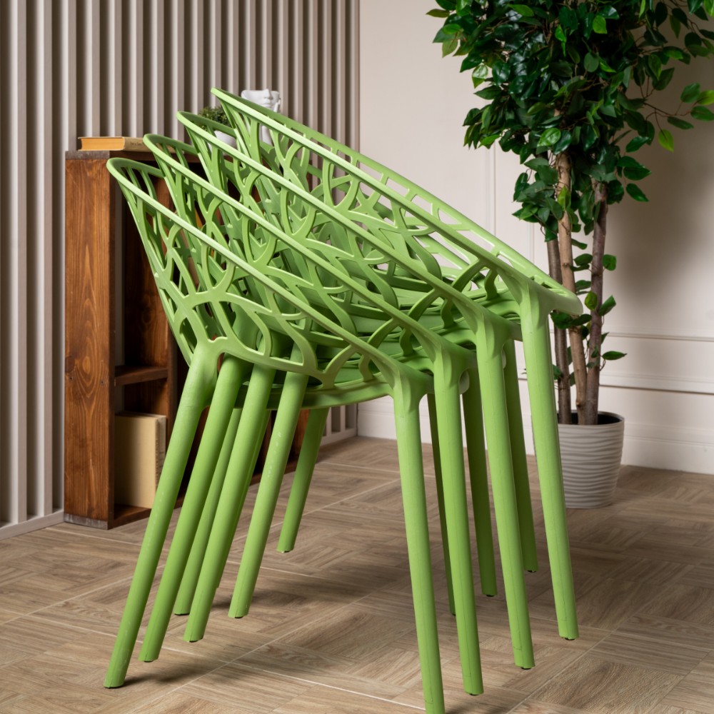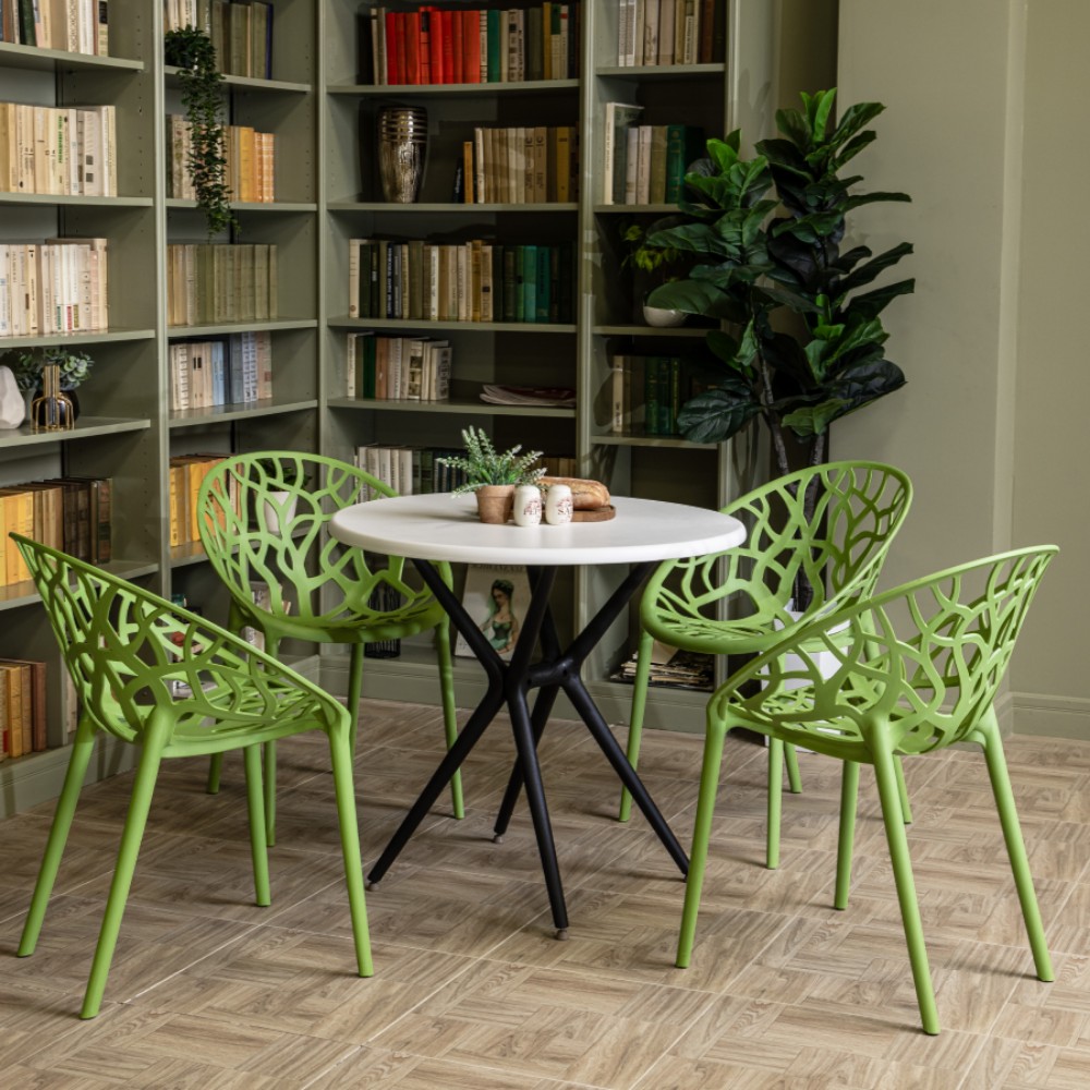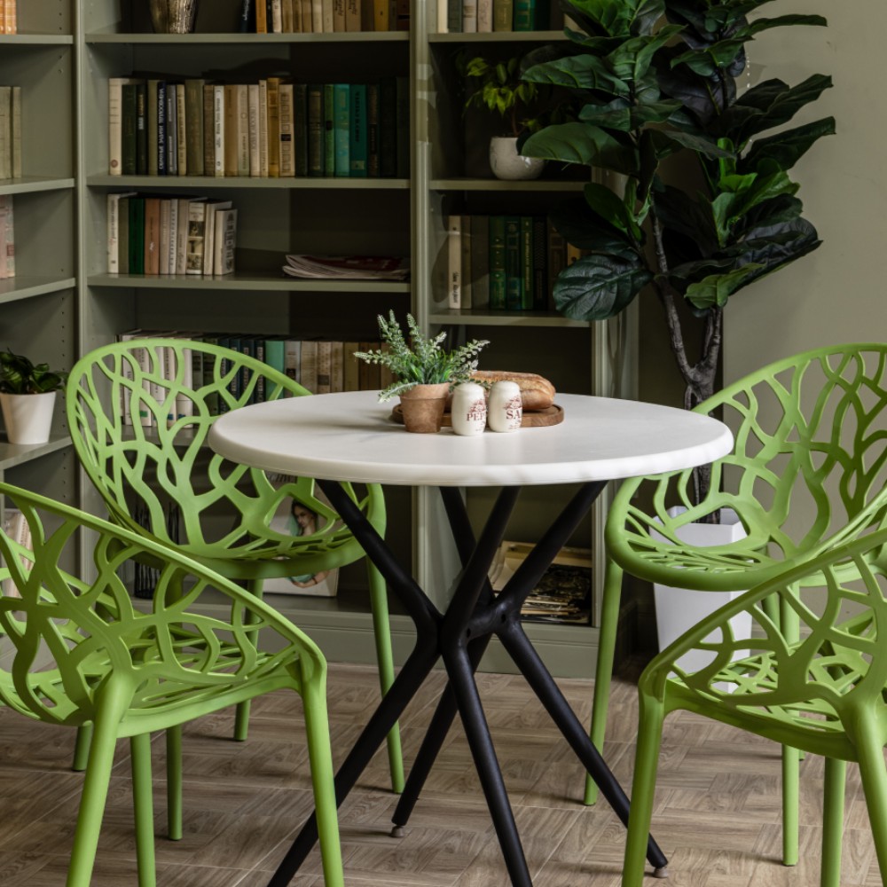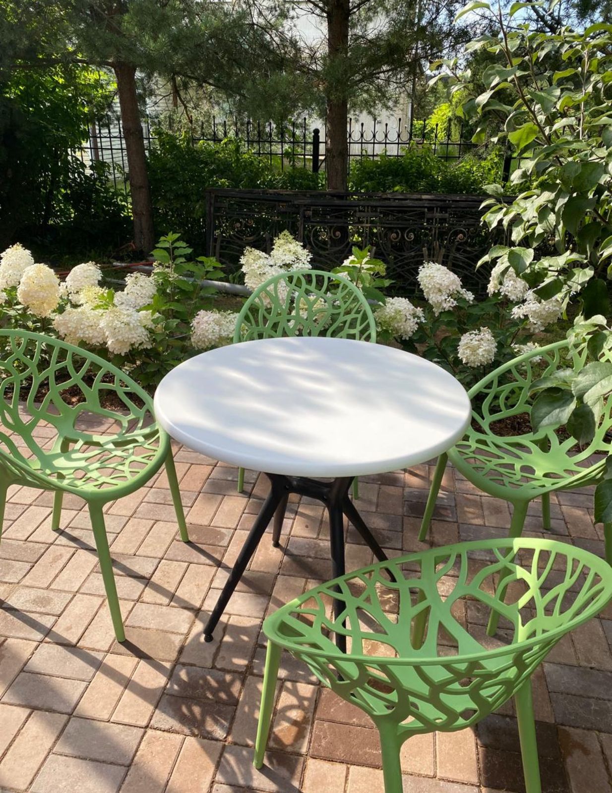 Контрастный стол и освежающие мятные стулья — этот комплект выглядит современно, легко и стильно. Он подойдёт как для домашней террасы или дачи, так и для фудкортов, летних веранд кафе и зон отдыха на открытом воздухе.
