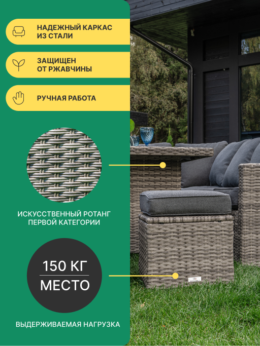 - Материал комплекта - искусственный ротанг (ручного плетения)