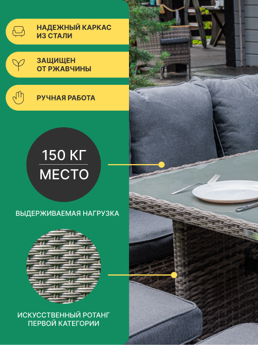 - Материал комплекта - искусственный ротанг (ручного плетения)
