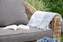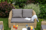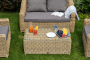 В основе мебели - алюминиевый каркас и круглый искусственный ротанг. Каркас оплетен с помощью ручного метода и представлен в соломенном цвете.