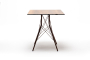 Каркас изготовлен из стали, окрашенной в матовый медный цвет. В качестве столешницы использован высококачественный монолитный компакт-пластика HPL, толщиной 12 мм. Цвет поверхности – «дуб».
