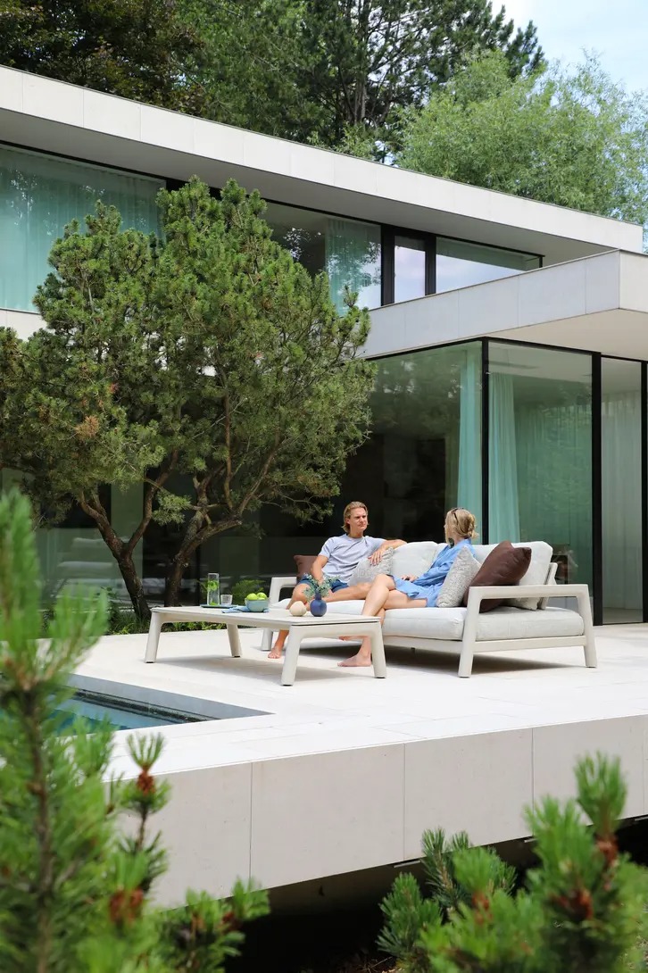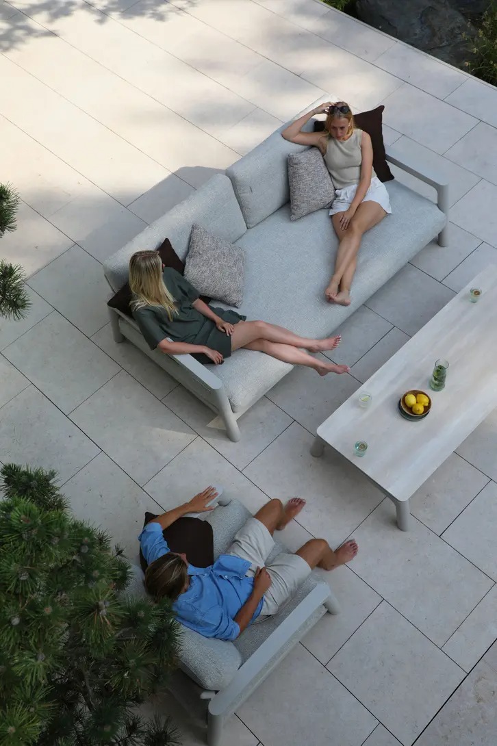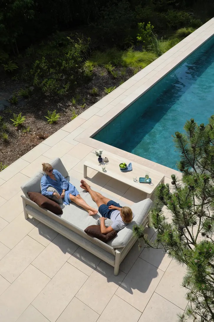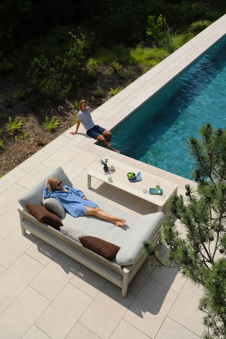 Поднимите круглую спинку и переверните ее. Подушки смещаются вместе с ней, мгновенно создавая более глубокое и удобное сиденье — идеальное для чтения, непринужденной беседы или кофе у бассейна.