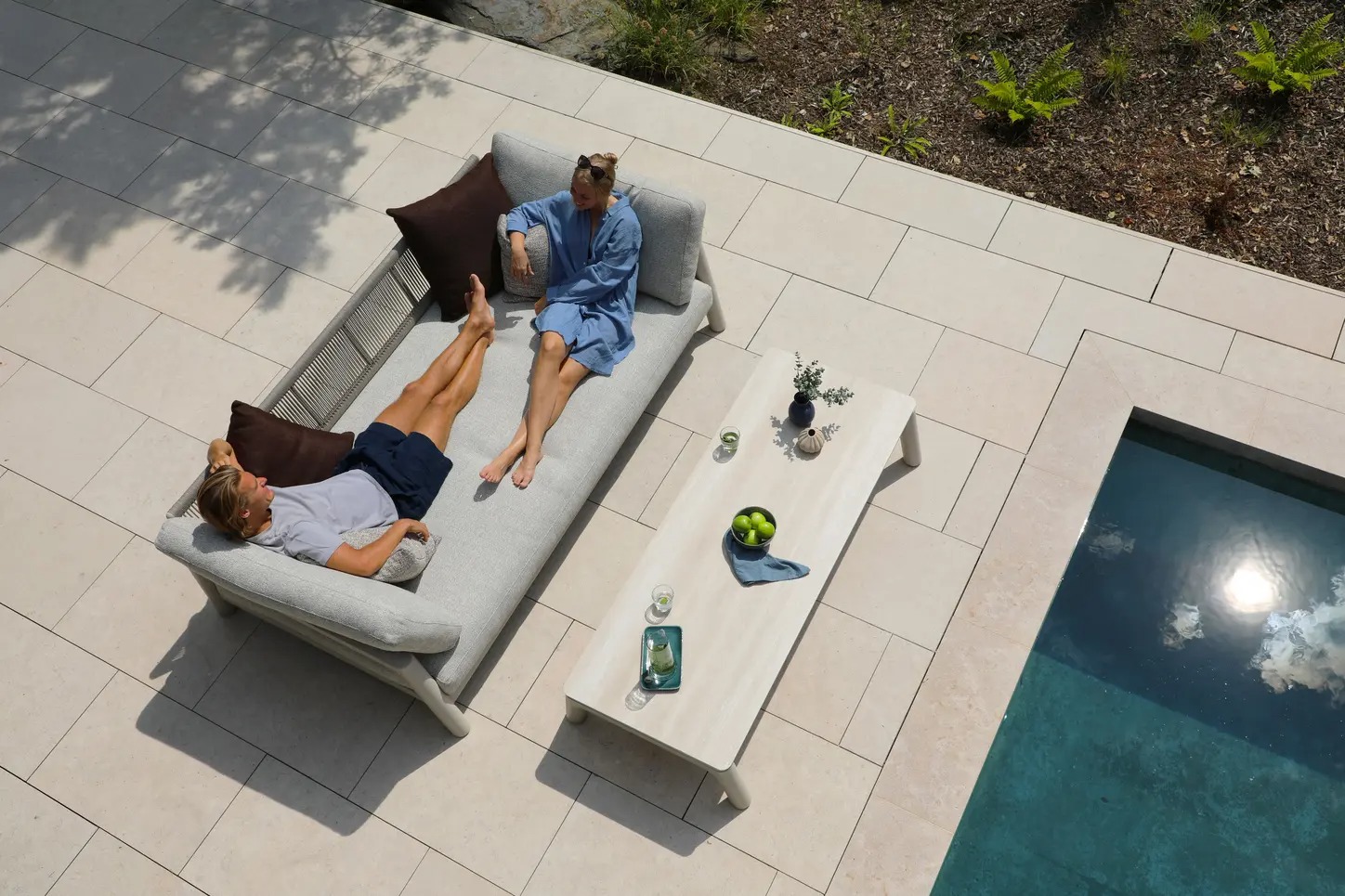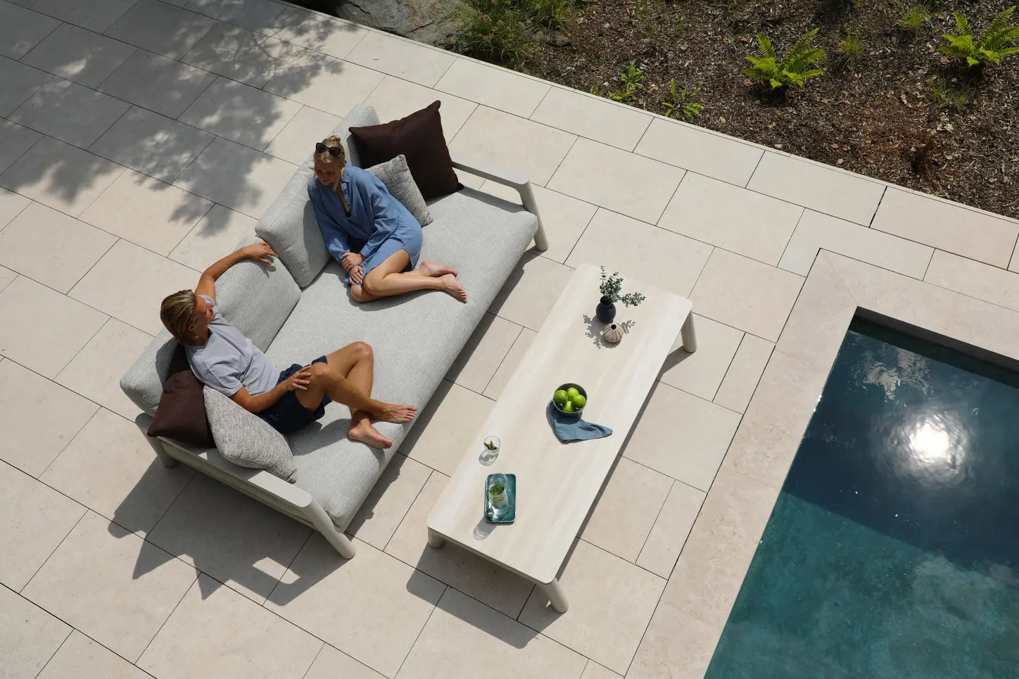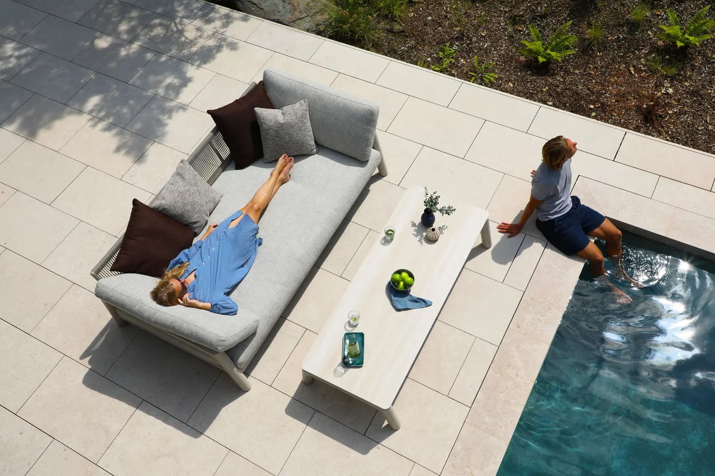 Поднимите круглую спинку и переверните ее. Подушки смещаются вместе с ней, мгновенно создавая более глубокое и удобное сиденье — идеальное для чтения, непринужденной беседы или кофе у бассейна.
