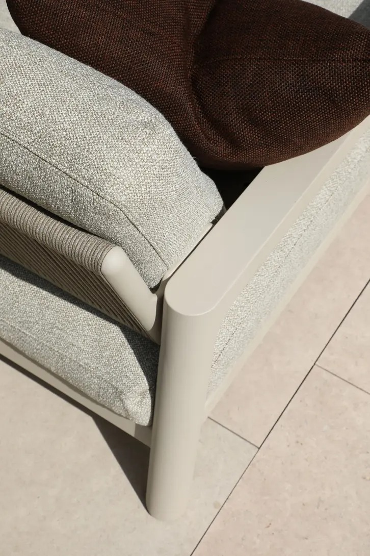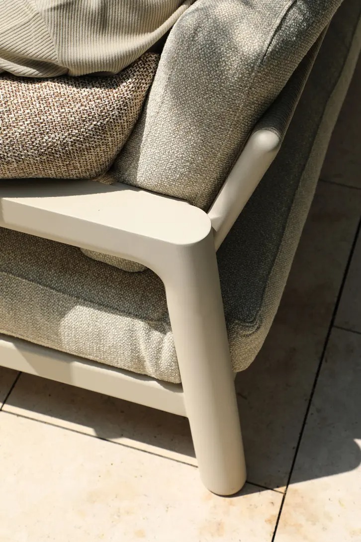 Ткань подушек- олефин с солнцезащитой и водоотталкивающей пропиткой. Алюминиевый каркас с порошковым напылением.
