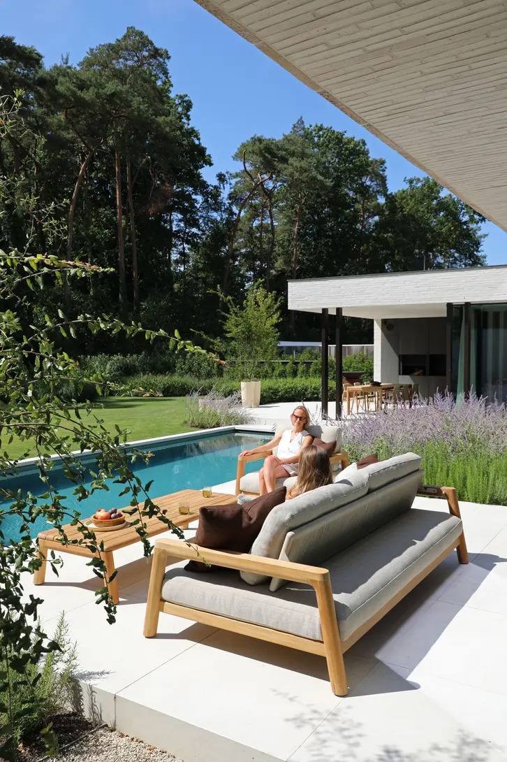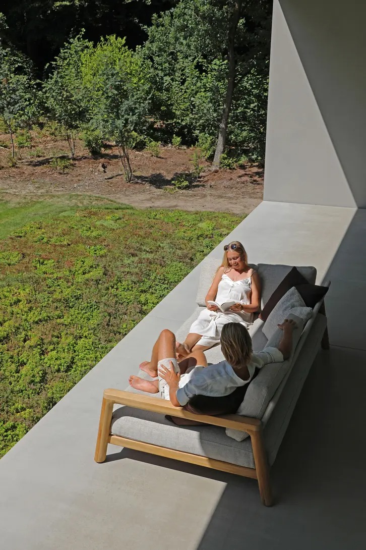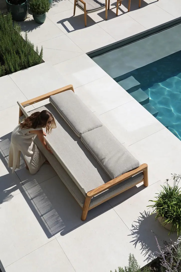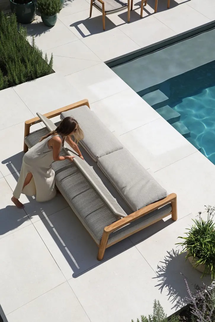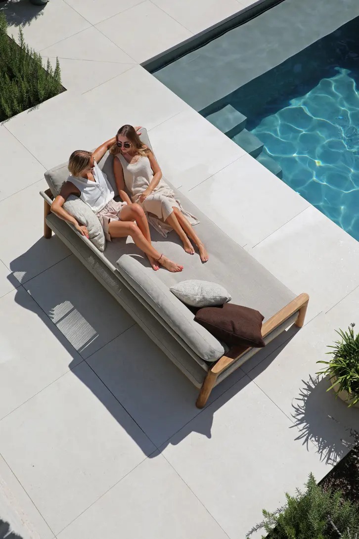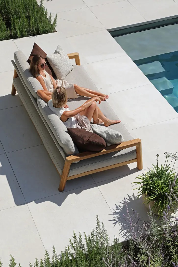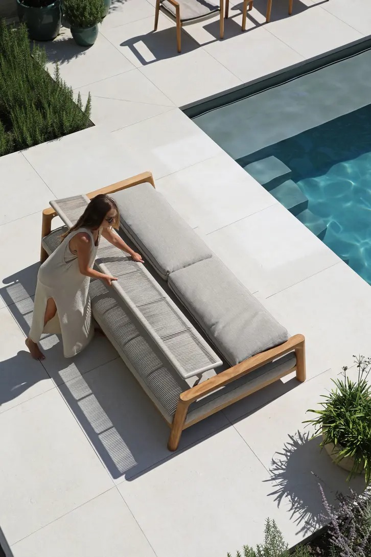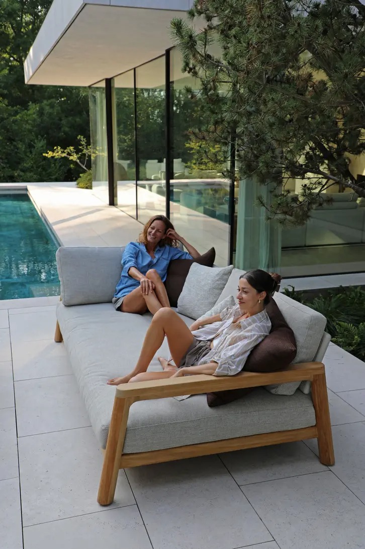 Поднимите круглую спинку и переверните ее. Подушки смещаются вместе с ней, мгновенно создавая более глубокое и удобное сиденье — идеальное для чтения, непринужденной беседы или кофе у бассейна.