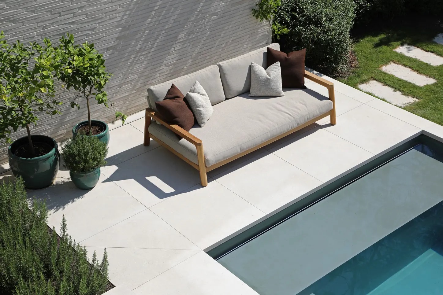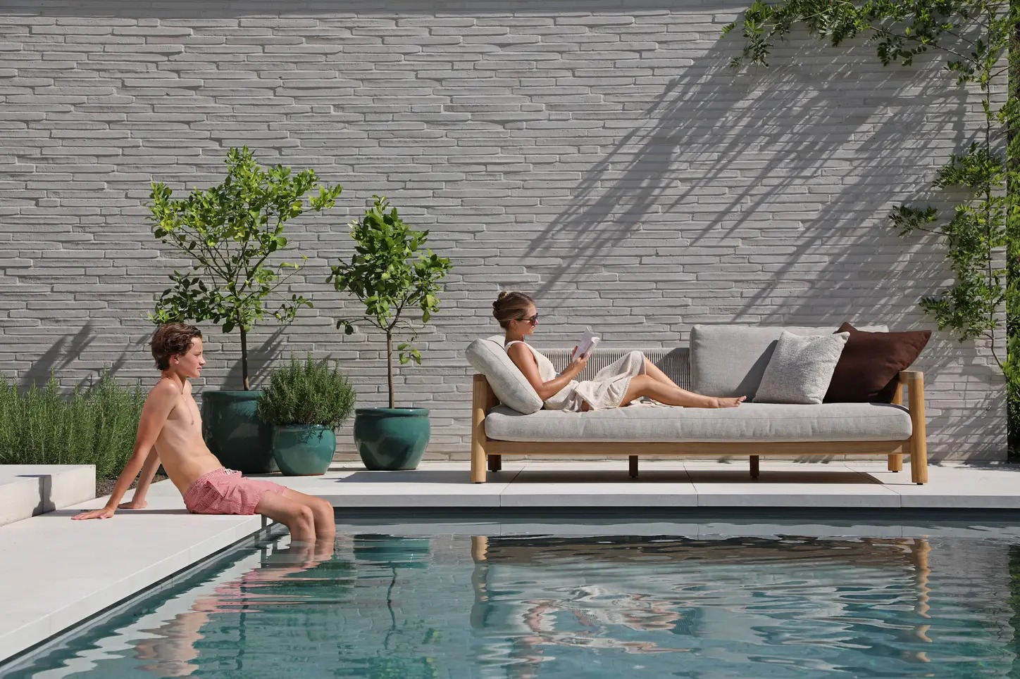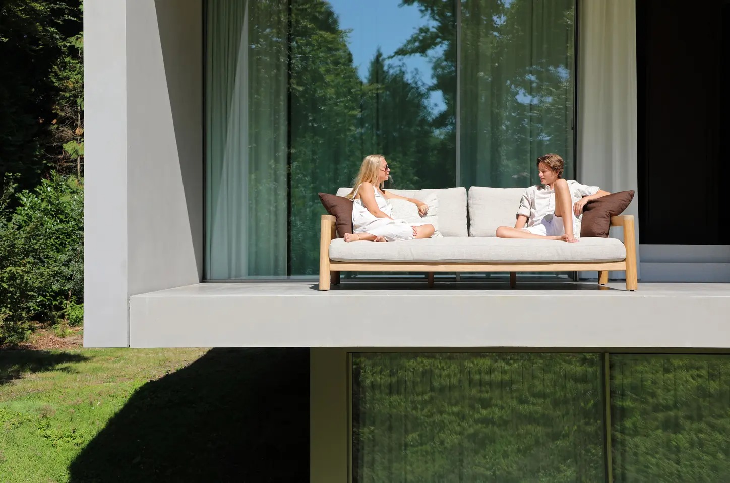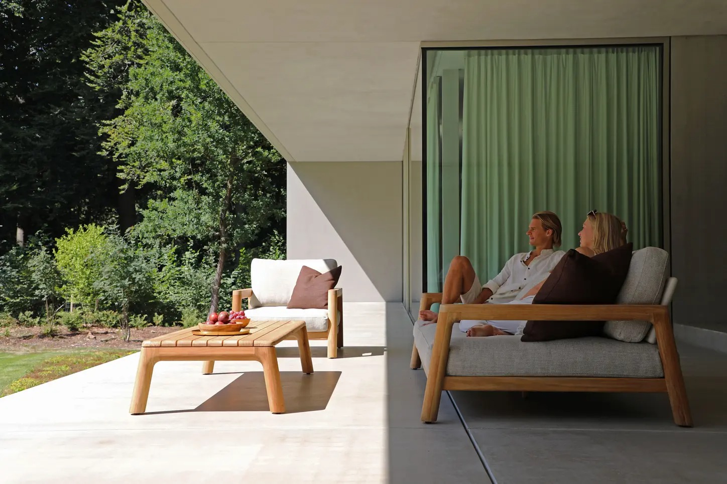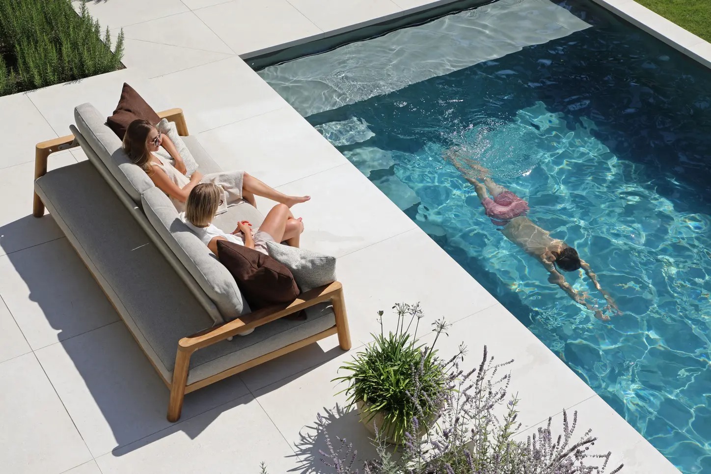Поднимите круглую спинку и переверните ее. Подушки смещаются вместе с ней, мгновенно создавая более глубокое и удобное сиденье — идеальное для чтения, непринужденной беседы или кофе у бассейна.