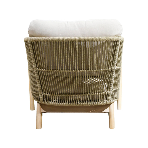 Talara - это современная коллекция садовой мебели из акации, выполненная в комбинации натурального веревочного плетения роуп, акации и светлых подушек. Цвет натуральной твердой древесины представляет собой натуральный цвет с мелкой текстурой, придающий древесине приятный теплый вид.