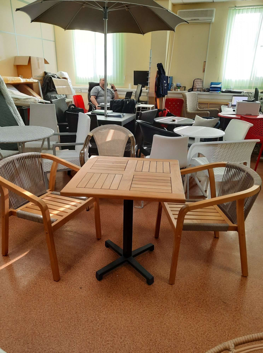 Кресло Pablito - идеальный вариант для использования на летних площадках различных заведений, но также подходит для частных террас и открытых пространств. Каркас выполнен из дерева - ироко или дуба. Древесина ироко отличается очень высокой прочностью, твердостью и сопротивлением нагрузкам, практически не подвержена воздействию различного рода вредителей, мебель из дуба имеет высокую износостойкость и может прослужить долгие годы без потери эстетического вида и эксплуатационных свойств. Плетение на спинке и подлокотниках выполнено из роупа натурального цвета. Подушки выполнены из ткани Etisilik®, которая обладает водоотталкивающими, маслоотталкивающими свойствами и устойчивостью к любым пятнам и воздействию УФ-излучения.