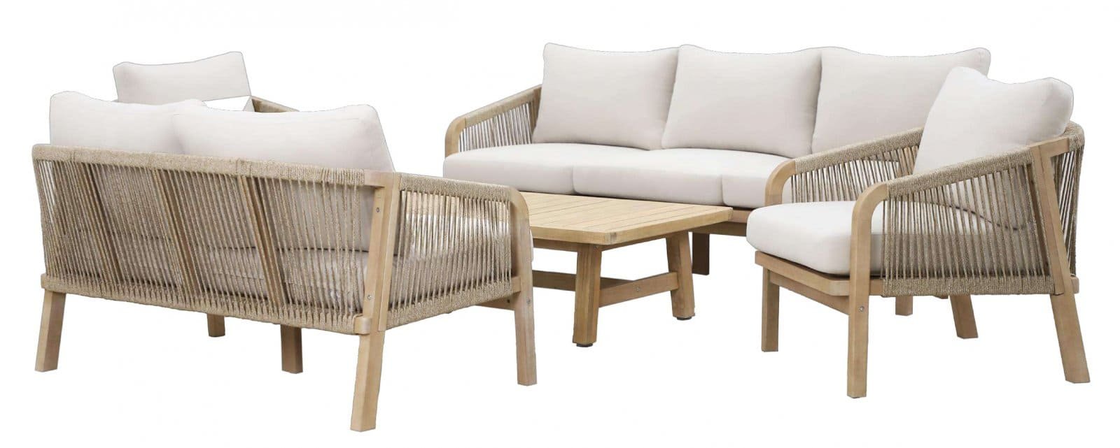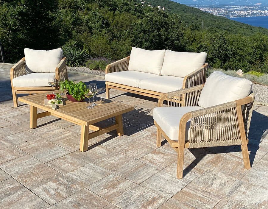 Ravona - это современная садовая коллекция из АКАЦИИ, выполненная в комбинации натурального веревочного плетения роуп, акации и бежевых подушек. Цвет натуральной твердой древесины представляет собой натуральный цвет с мелкой текстурой, придающий древесине приятный теплый вид. Ravona - это стиль и элегантность на Вашей веранде.
