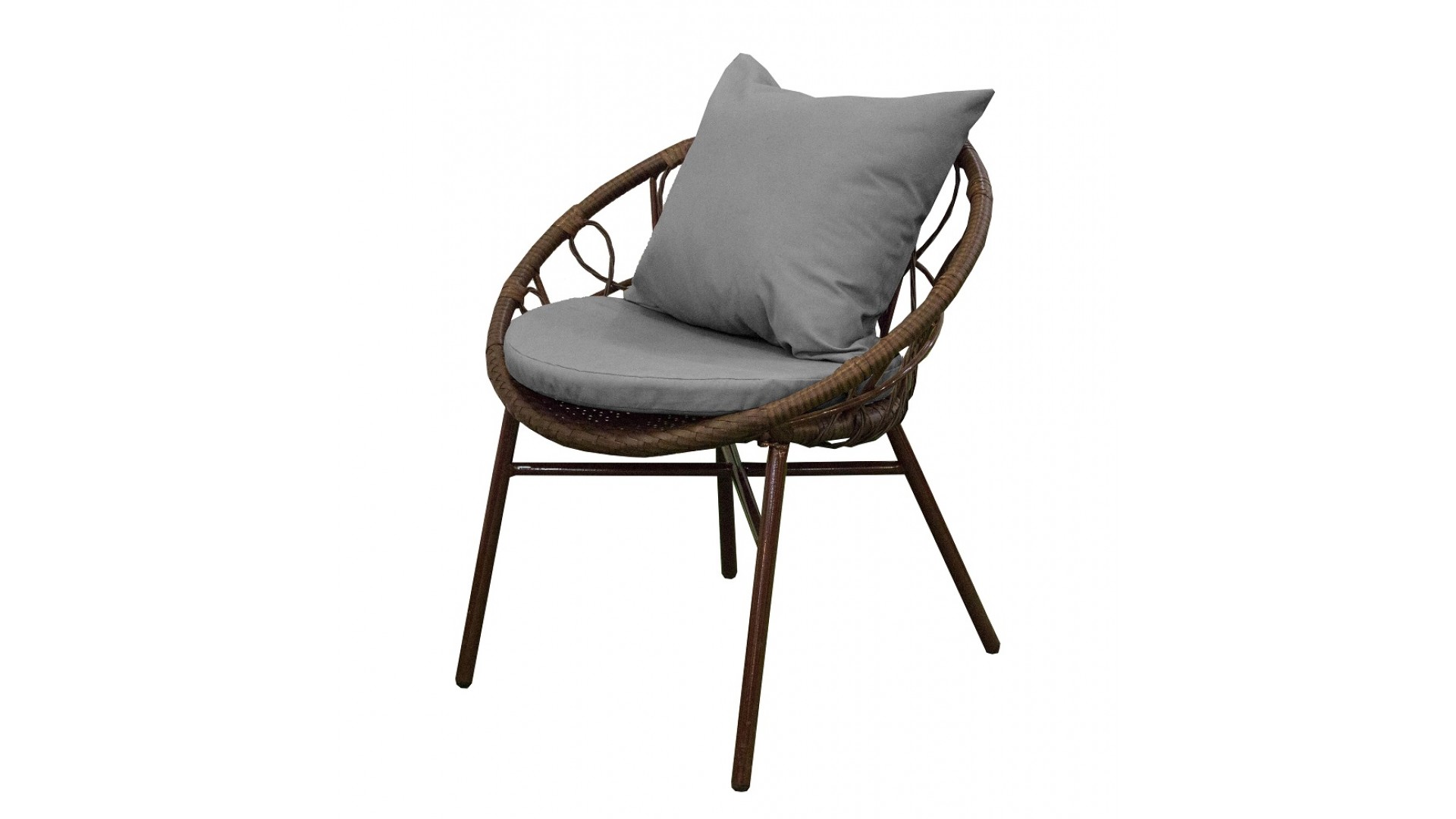 Кресло к набору мебели Майорка. Размеры изделия (ДхГхВ): 91х60х82 см. Материал искусственный ротанг. Цвет натуральный. Подушки в комплекте серого цвета. Каркас: алюминий