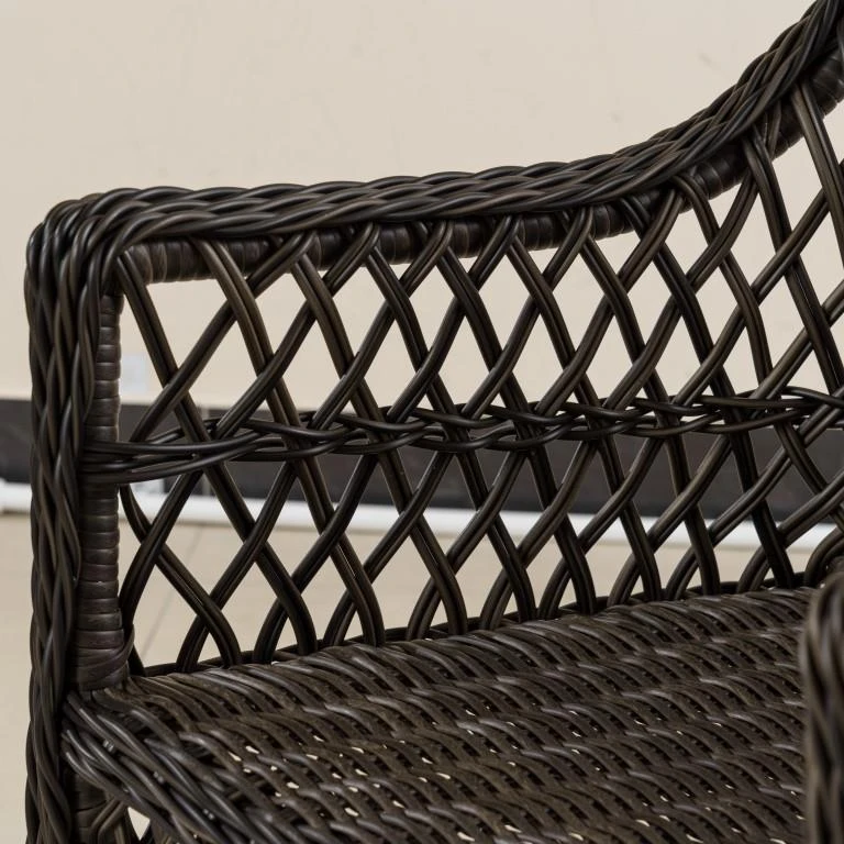 Кресло изготовлено вручную в полукруглом жгуте, идеально сочетается как с плетёным столами, так и со столами из керамогранита или HPL.