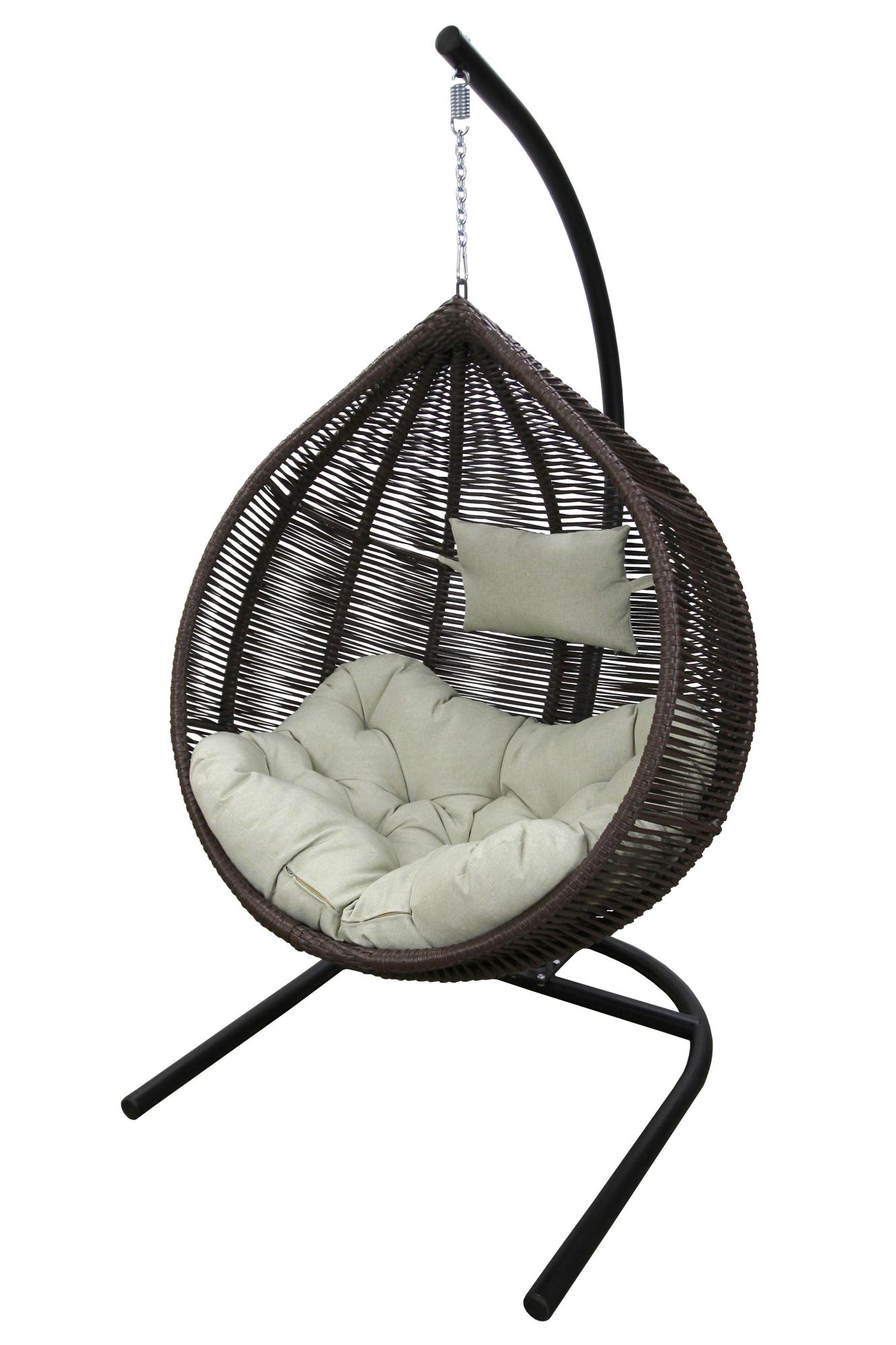 Кресло подвесное Флорес (стойка+основание черноt, корзина коричневая, подушка estera-хамелеон. 3 уп. (В))