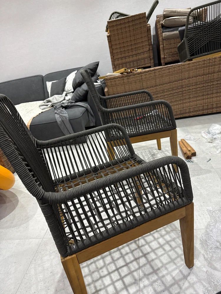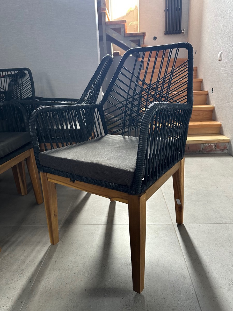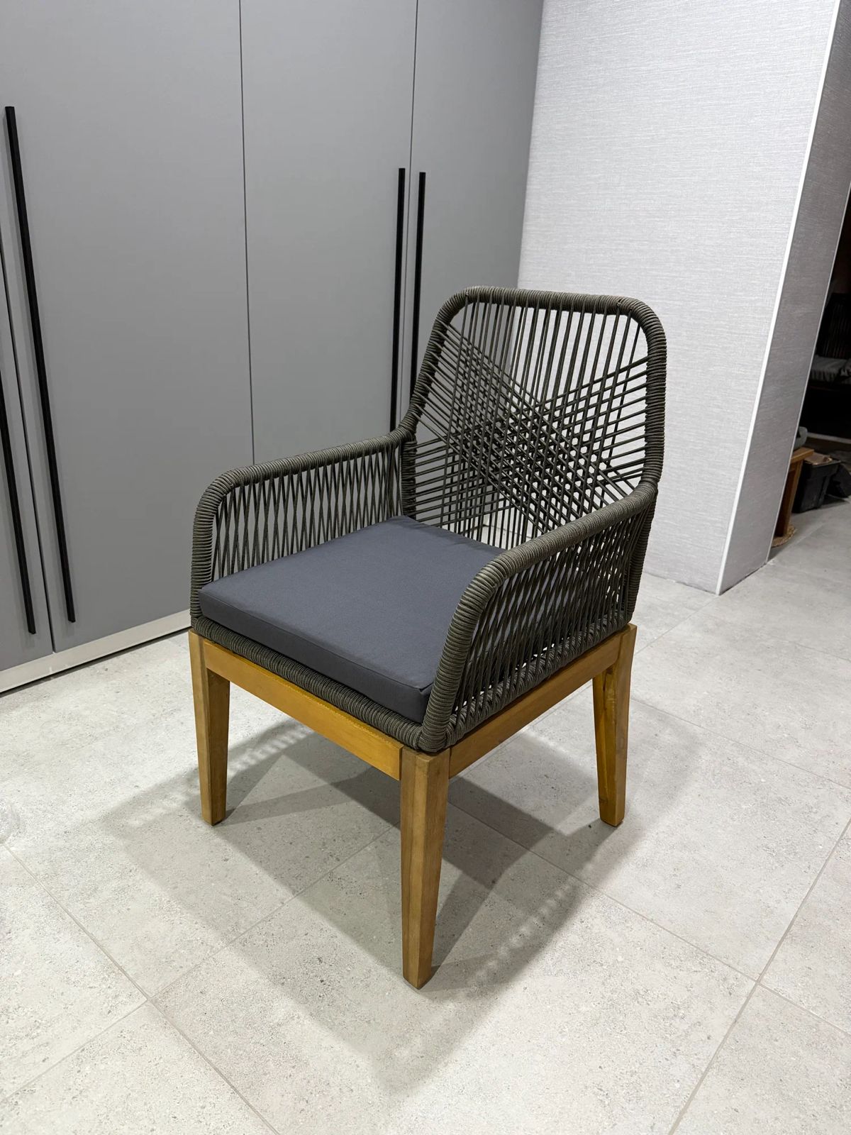 Обновите пространство для отдыха с креслом Royal Family CHLOE в стильном графитовом исполнении. Модель сочетает благородную фактуру древесины акации с современной текстурой уличной веревки, создавая гармоничный баланс природной эстетики и городского стиля.