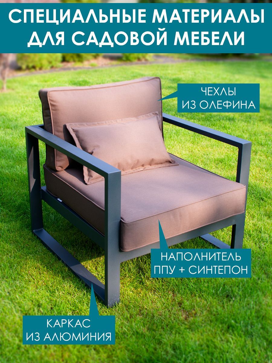 Кресло Callisto giardino "Лагуна" ( с двумя подлокотниками). Каркас: алюминий, окрашенный в цвет антрацит. Размеры кресла ШхВхГ 780х600х800 мм. Размеры подушек: для сиденья ШхВхГ660х120х800 мм; Вес: 3 кг. Подушка под спину 660х390 мм. Вес 1,8 кг. Ткань оксфорд, устойчива к истиранию, выгоранию на солнце, влагоотталкивающая. Наполнитель: многослойный формованный ППУ различной плотности, синтепон и спанбонд. Чехлы подушек на молнии. Вес каркаса: 9,2 кг. Продукция поставляется в собранном виде (кресло + 3 подушки). Нагрузка до 120 кг. Гарантия: 12 месяцев.