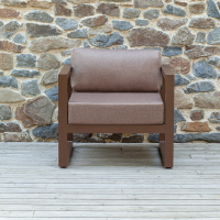 Габариты кресла с подушками 800х755х770 мм, габариты каркаса 800х755х665 мм. Каркас изготовлен из алюминия с толщиной стенок 3 мм. 2 подушки, размеры 665х700х150 и 665х190х300 мм; съёмные внешние чехлы из рогожки коричневого оттенка, 100% полиэстер. Набивка большей подушки поролон, подушка для спины набита синтепоном, обе упакованы в несъёмный чехол из спанбонда. Регулируемые ножки с пластиковым основанием. Высота от пола до сидения (металл) 320 мм. Максимальная нагрузка на кресло 150 кг.