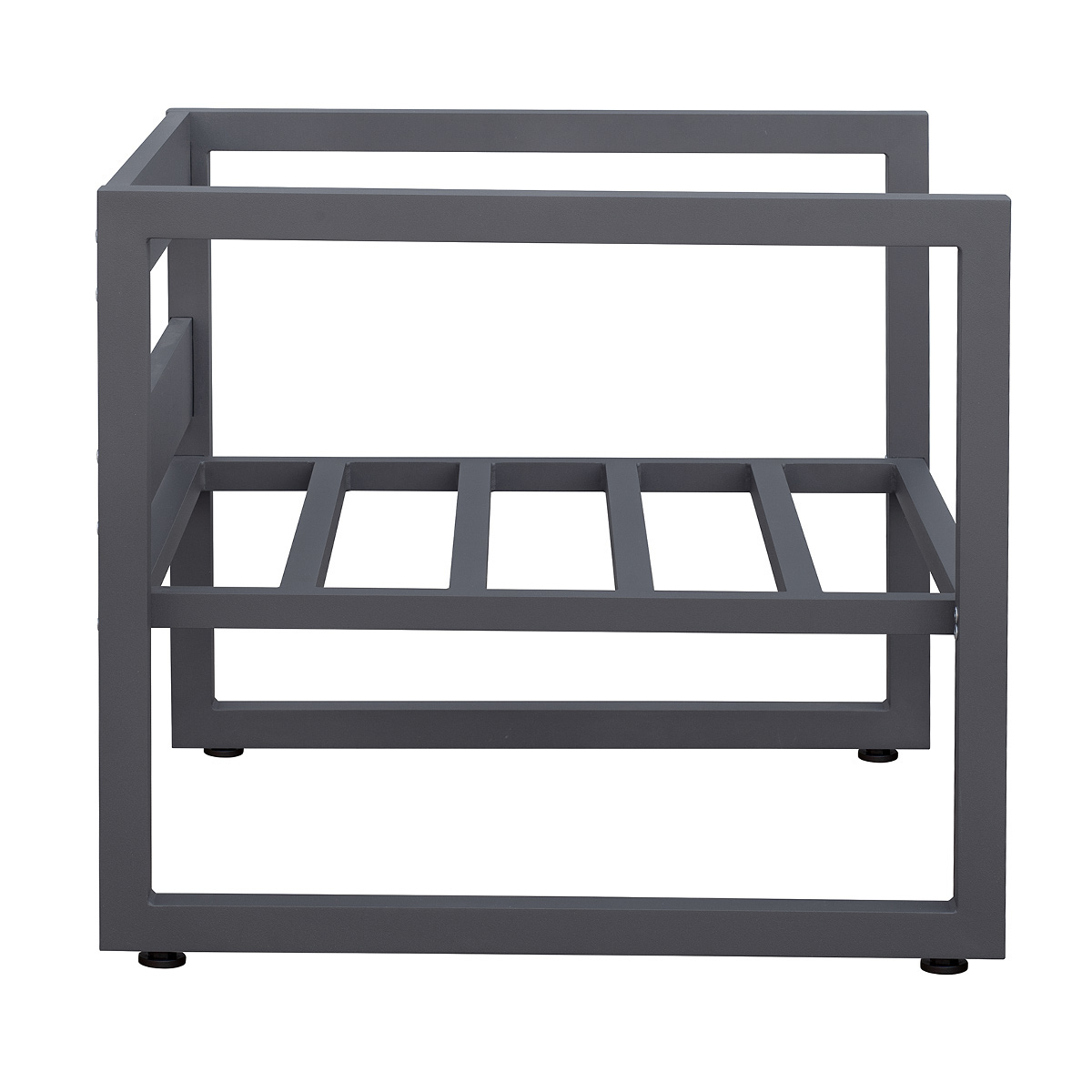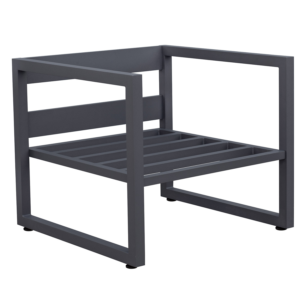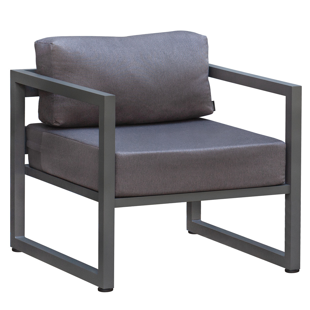 Габариты кресла с подушками 76х75х77 см, габариты каркаса 76х75х66 см. Каркас изготовлен из алюминиевой профильной трубы с полимерным покрытием темно-серого цвета. 2 подушки, размеры 66х70х15 и 66х19х30 см.