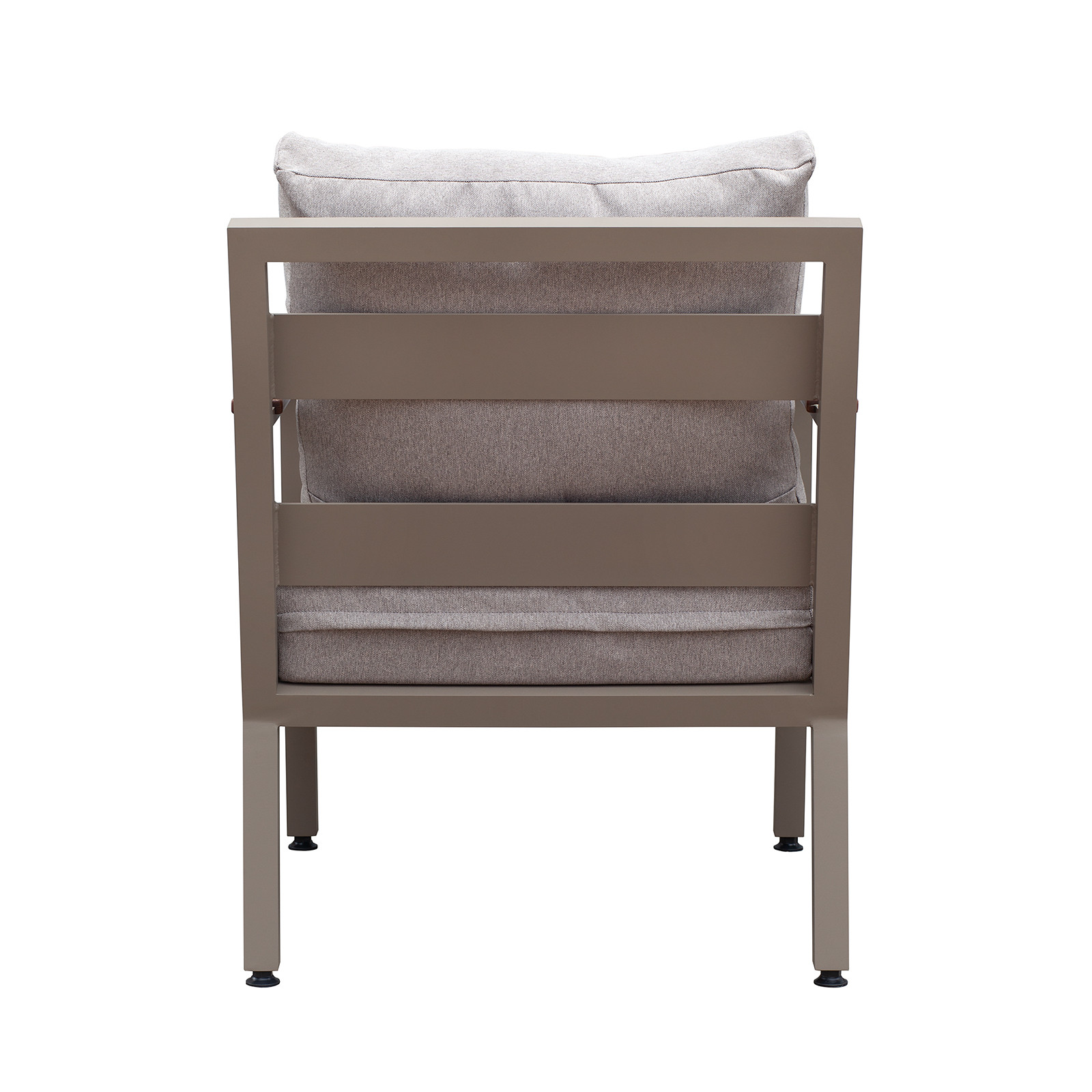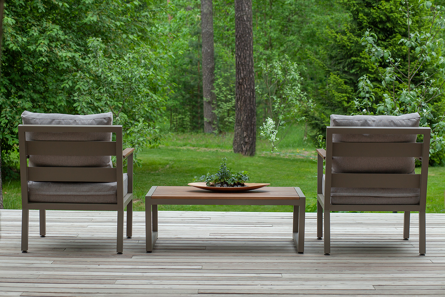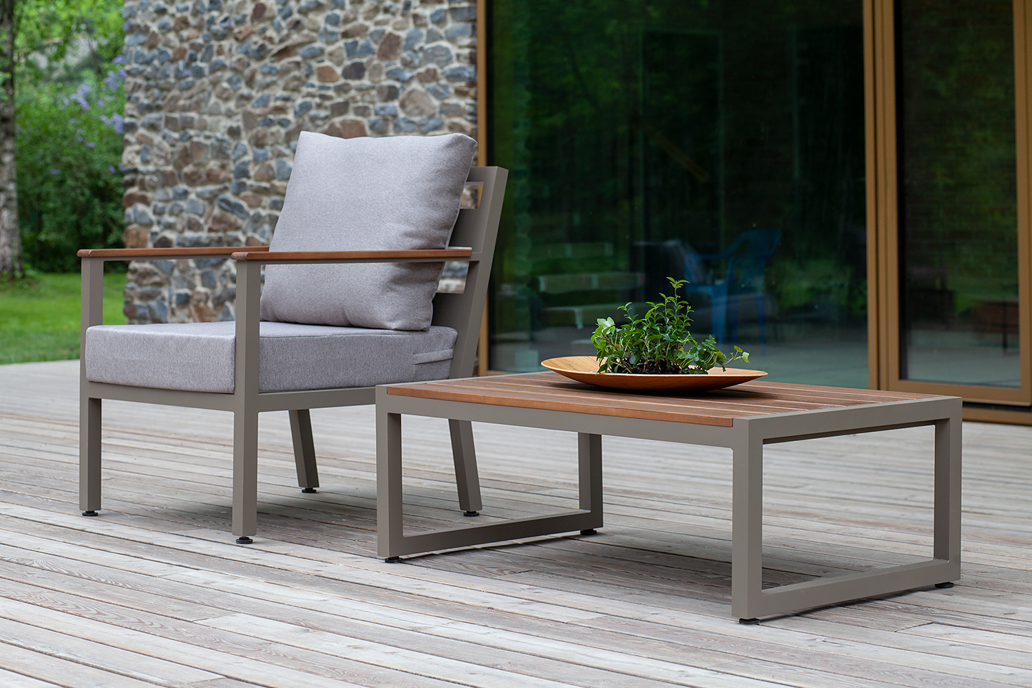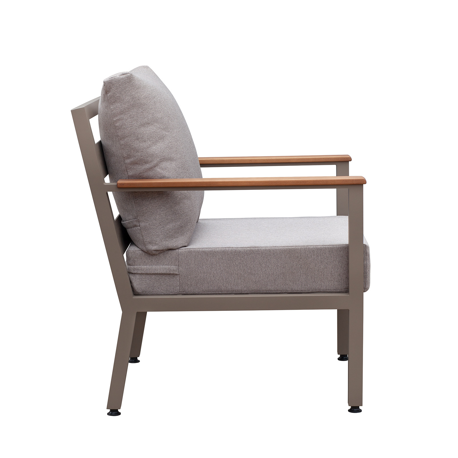 Уличное кресло из коллекции мебели SANTORINI сочетает в себе элегантный дизайн, комфорт и долговечность. Легкий алюминиевый каркас дополняют 2 удобные подушки со съемными чехлами. Садовое кресло с деревянными подлокотниками подходит для использования на улице и в помещении. Уличное кресло в комплекте с журнальным столиком и диваном создают комфортное пространство для отдыха в саду, на террасе, у бассейна.