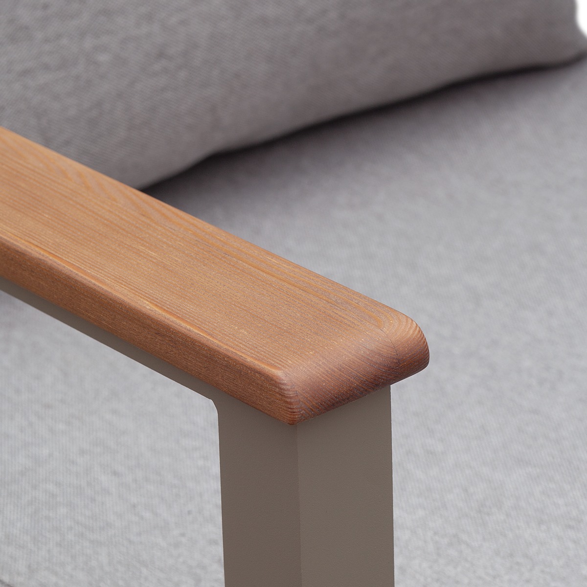 Деревянные подлокотники выполнены из лиственницы, покрыты защитным маслом, толщина массива 20 мм,.
