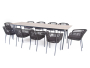 - 10 плетеных стульев "Марсель" из круглых эластичных лент , размером - 570х620х800 мм, цвет темно-серый "Рио" стол из HPL 300х100см, цвет столешницы "дуб" 1шт. 3 000Х1 000Х750, "Марсель" стул плетеный из роупа, каркас алюминий темно-серый (RAL7024) шагрень, роуп темно-серый круглый, ткань темно-серая 10шт. 570Х620Х800,