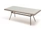 Каркас изделия изготовлен из алюминия, благодаря чему большой стол удобно перемещать. В качестве оплетки использован искусственный ротанг круглого ручного плетения в натуральном бежевом оттенке.