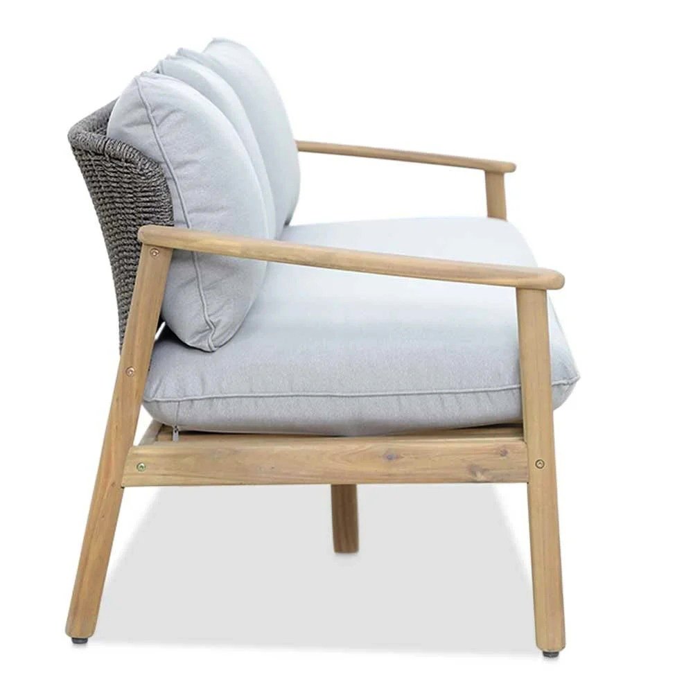 Freeport - это воплощение современного стиля и элегантности для вашего сада. Коллекция, созданная из натуральной акации в сочетании с изысканным веревочным плетением и серыми подушками, привносит уют и роскошь в любое открытое пространство. В состав набора входят просторный трехместный диван, стильный кофейный стол и два удобных кресла - идеальный ансамбль для отдыха на свежем воздухе. Прочный деревянный каркас обеспечивает надежность и долговечность, а модный дизайн подчеркивает вкус и статус владельца. Freeport - это комфорт, стиль и природная эстетика на вашей веранде.