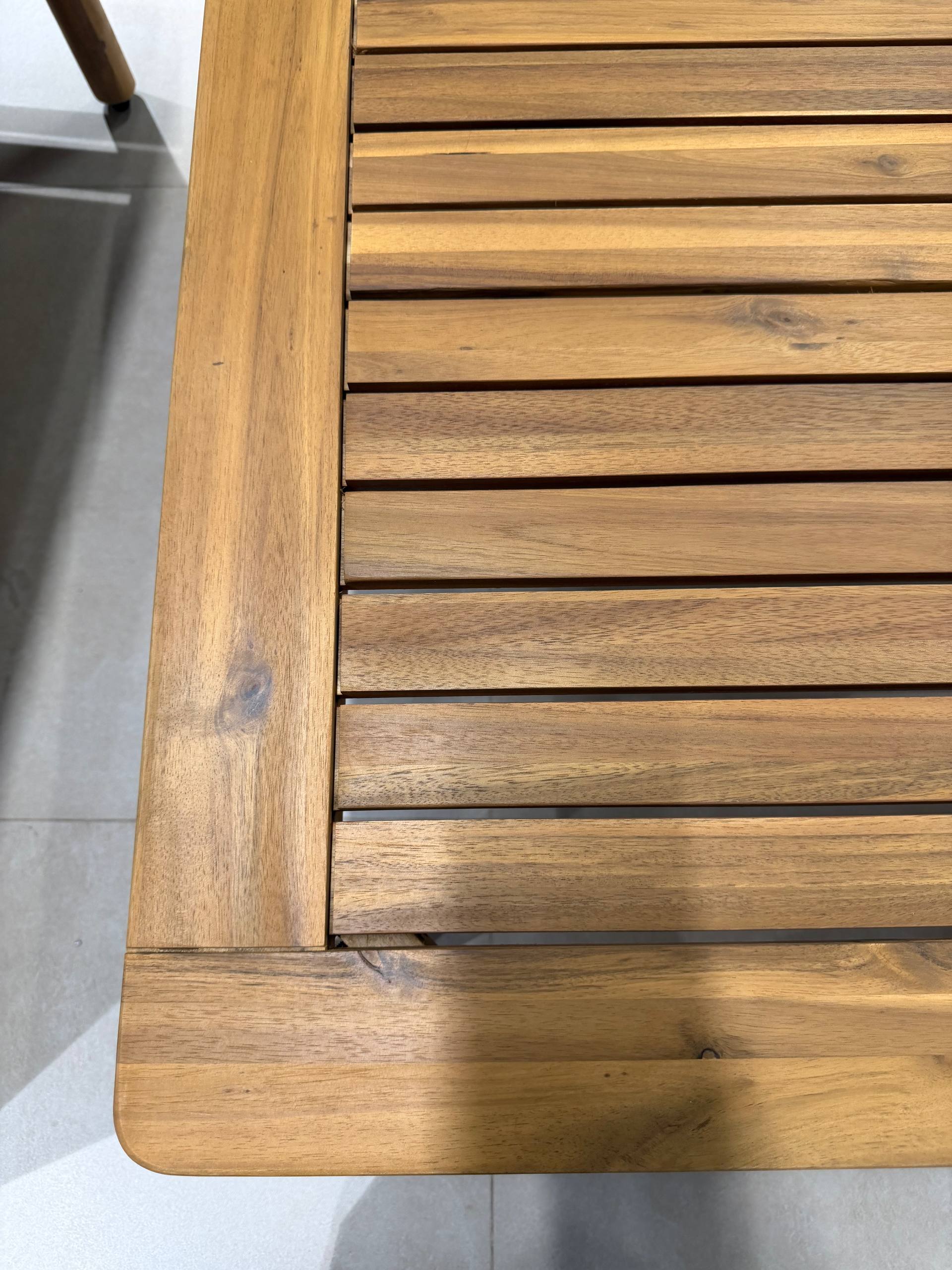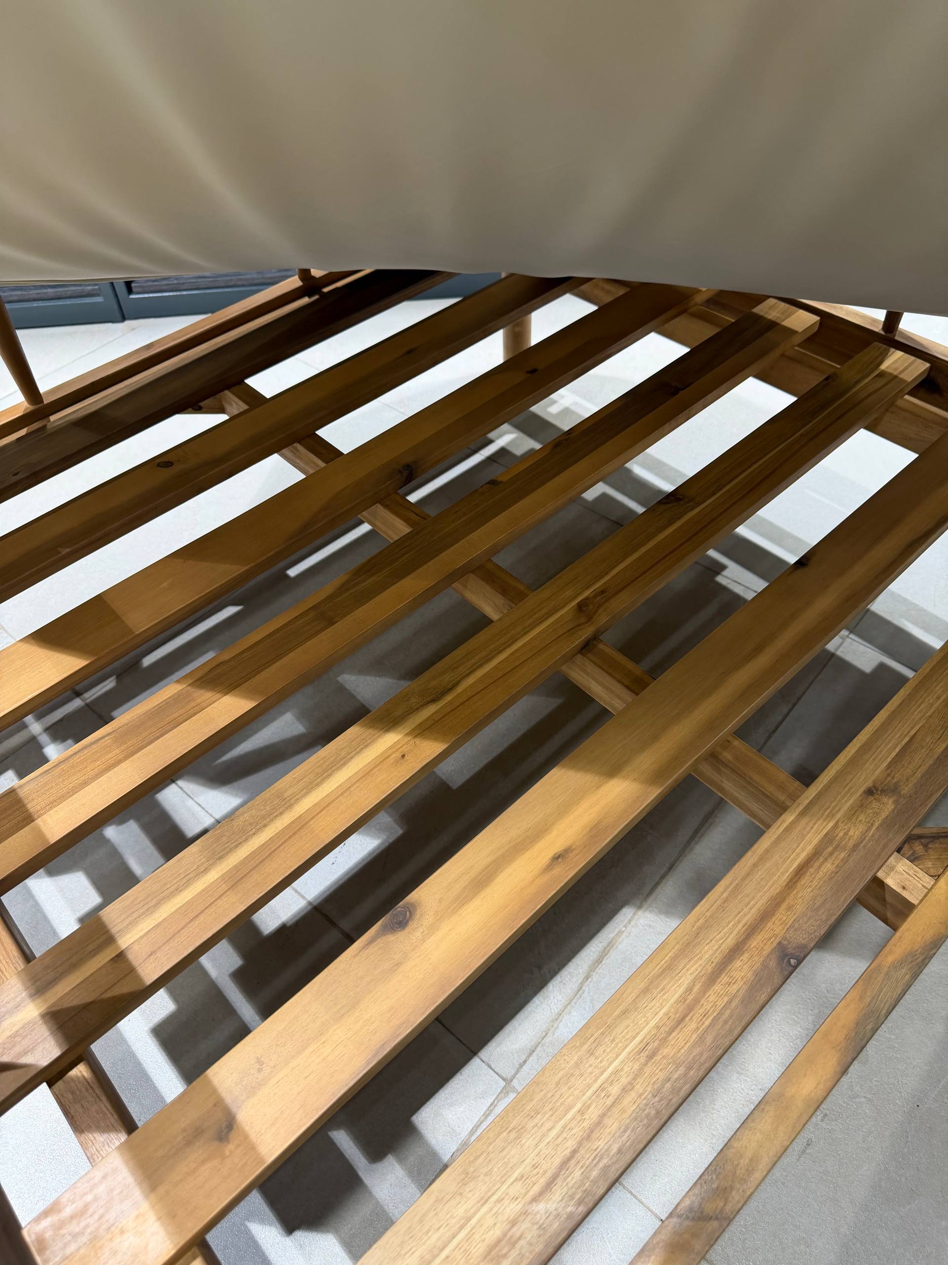 - Прочный каркас из акации — гарантирует долговечность и устойчивость к внешним воздействиям. Акация известна своей твёрдостью и устойчивостью к влаге, что делает мебель идеальной для использования на улице.