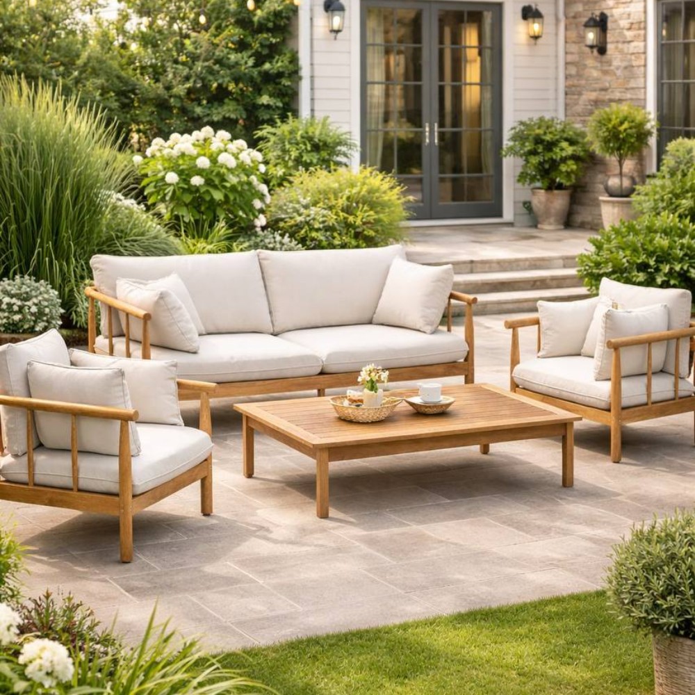 Нейтральный бежевый оттенок гармонично впишется в любой ландшафтный дизайн — от минималистичного до классического. Представьте: тёплый летний вечер, лёгкий бриз, шелест листвы… и вы, уютно устроившись в этом комплекте, наслаждаетесь моментом. Создайте своё идеальное место для отдыха уже сегодня!