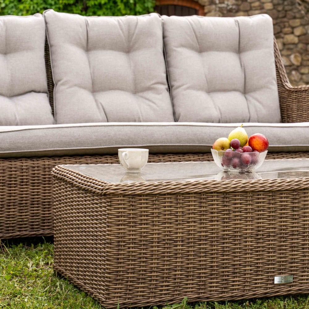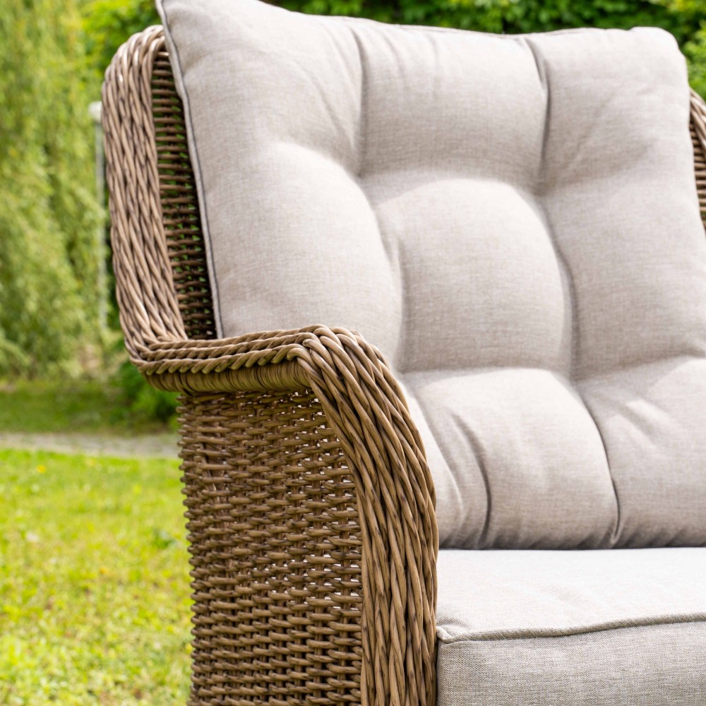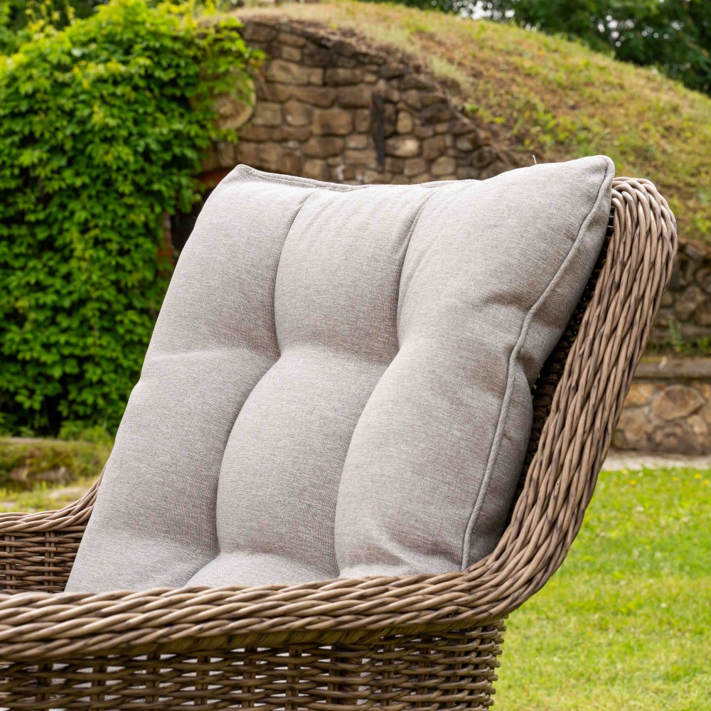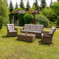 Каркас мебели оплетён искусственным ротангом, устойчивым к влаге, ультрафиолету и перепадам температур. Комплект не боится дождя и солнца, легко очищается и годами сохраняет презентабельный внешний вид даже при использовании на открытом воздухе.