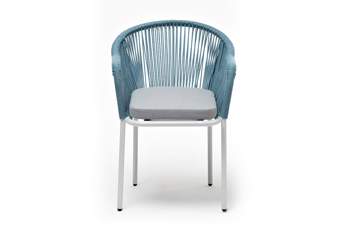Подушка в комплекте со стулом выполнена из полиэстера 100% плотностью 300гр/м2 с влагоотталкивающей пропиткой. Это надежный и прочный материал, который легко очищается и устойчив к неблагоприятным погодным условиям.