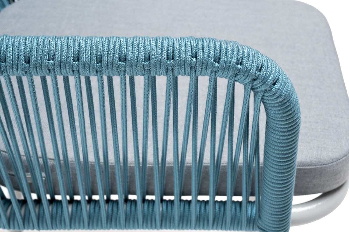 Стальной каркас гарантирует прочность и надежность, а плетение из эластичных лент высокопрочных полиэфирных волокон создает удобное и уютное сидение. Цвет оплетки - бирюзовый.
