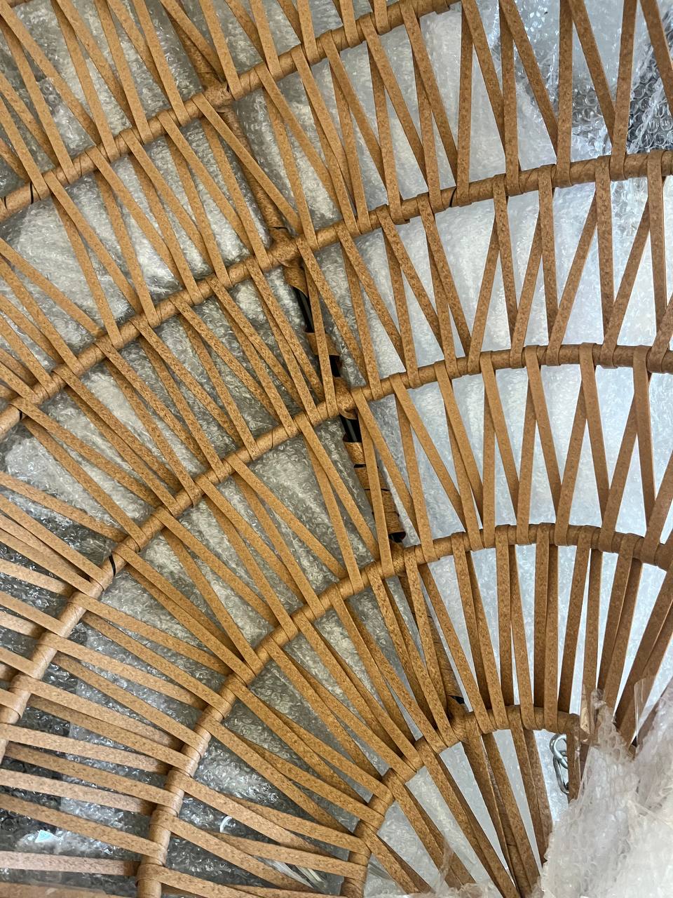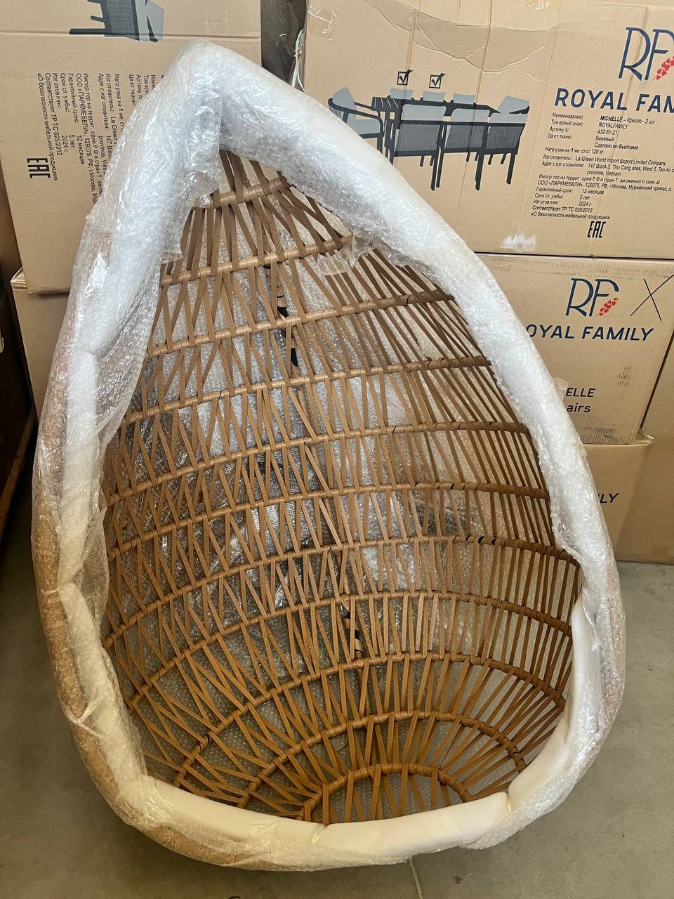немного расплетен ротанг на каркасе кресла, нет подушки и стойки
