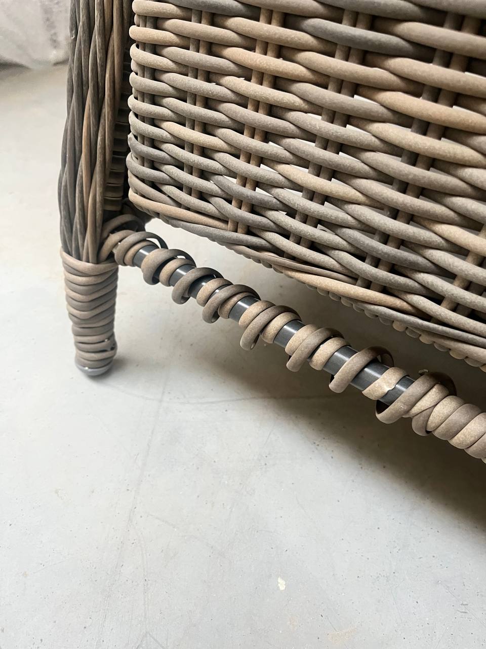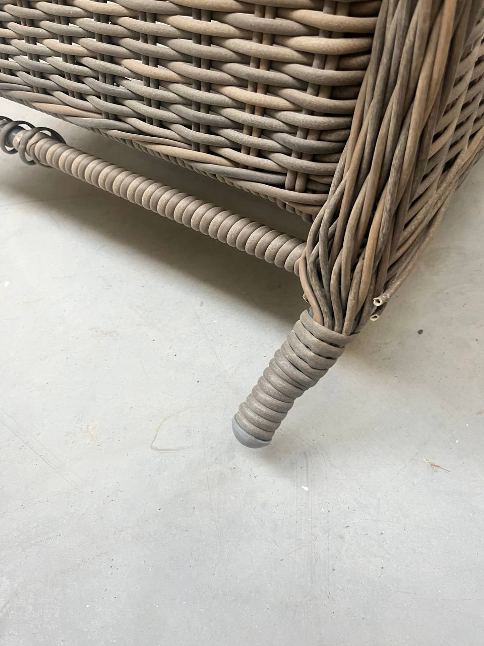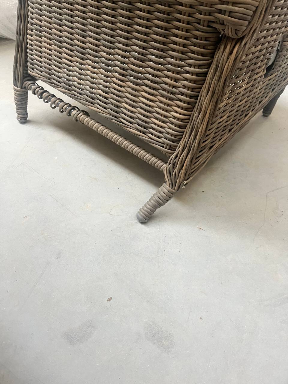 Ножка сломана, ротанг внизу расплетен, нет подушек.