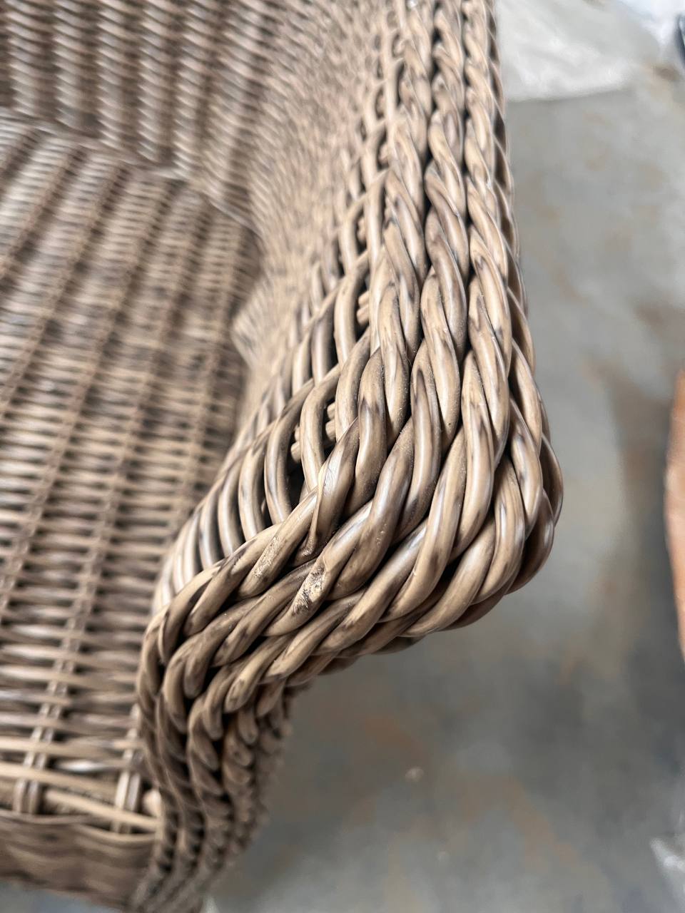 Без подушек под спину, незначительные потертости на спинке и подлокотнике